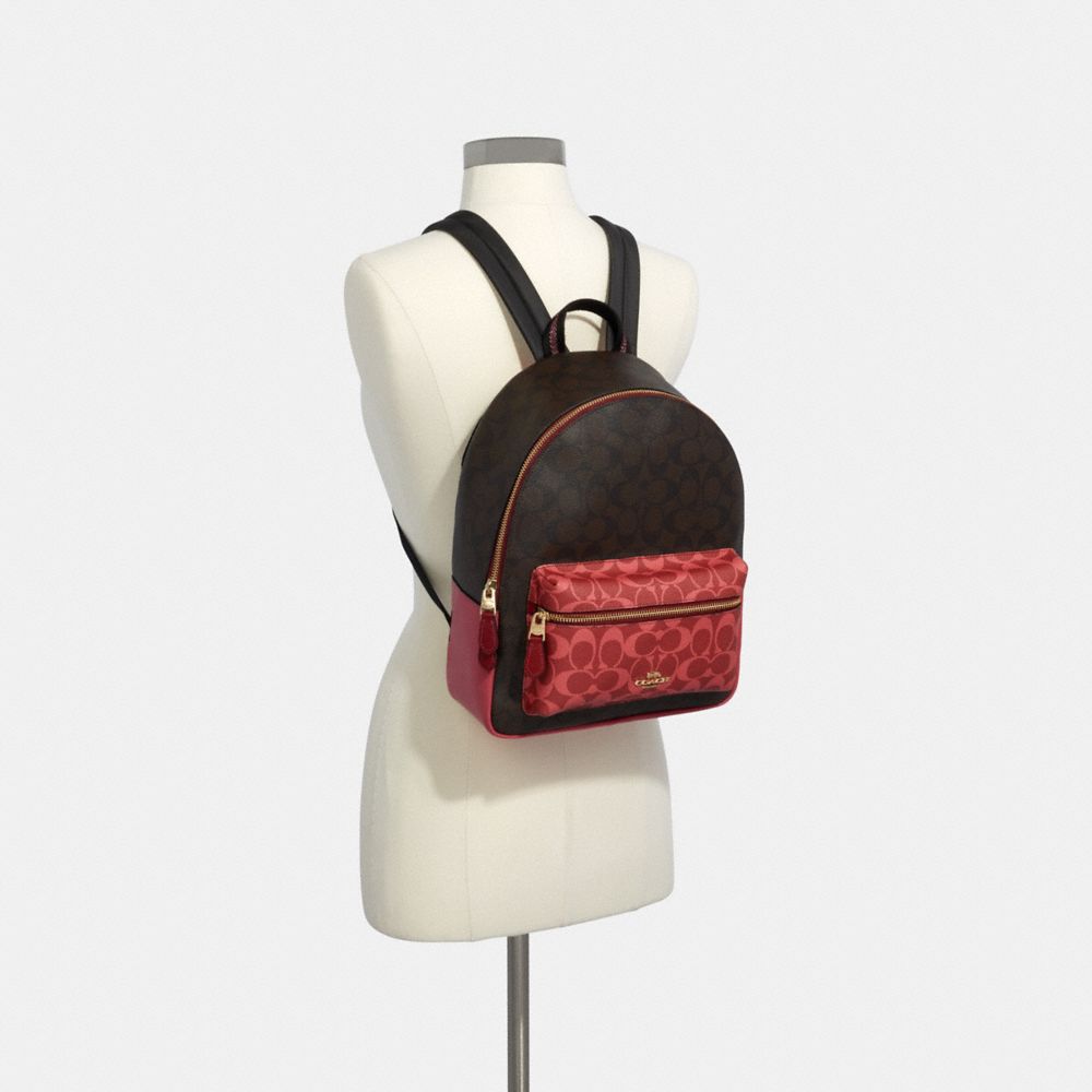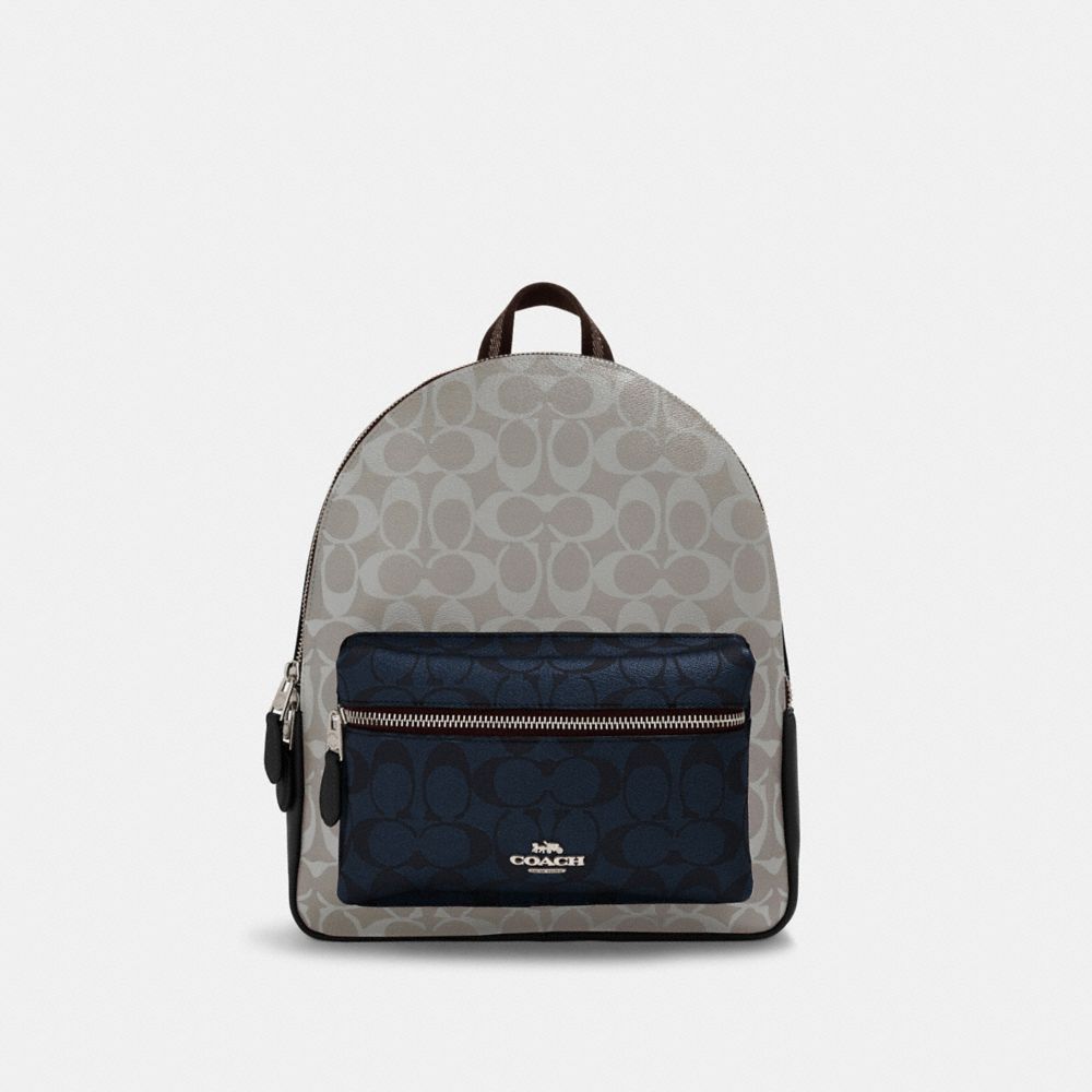 MEDIUM CHARLIE BACKPACK IN BLOCKED SIGNATURE CANVAS