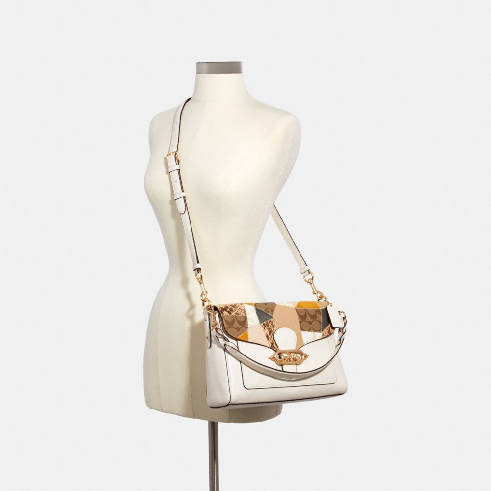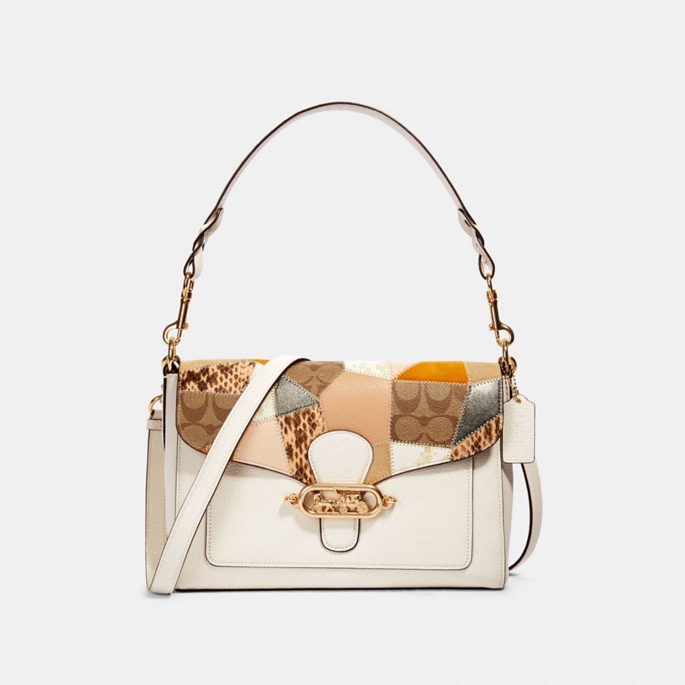 Refined pebble leather, Signature coated canvas, smooth leather, metallic leather, snake-embossed leather, nappa leather and suede| Inside multifunction pockets| Magnetic snap closure, fabric lining| Top handle with 8 1/2" drop| Outside zip pocket| Detachable strap with 18 1/2" drop for shoulder or crossbody wear| 11 1/2" (L) x 7 3/4" (H) x 3 1/2" (W)