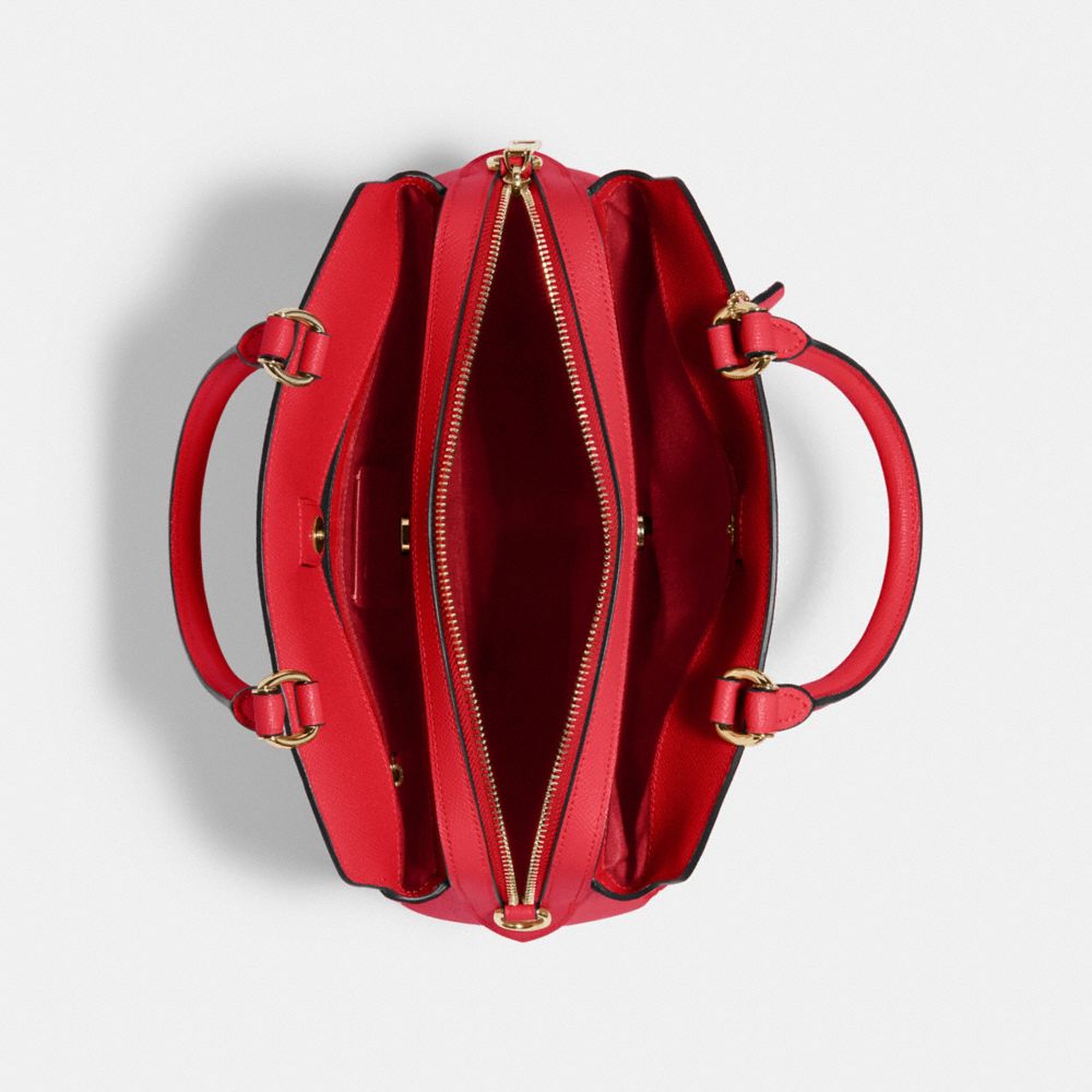 Crossgrain leather| Inside zip and multifunction pockets| Center zip compartment| Snap closure, fabric lining| Handles with 4 3/4" drop| Outside open pocket| Detachable strap with 20" drop for shoulder or crossbody wear| 12 3/4" (L) x 8 3/4" (H) x 5 1/4" (W)
