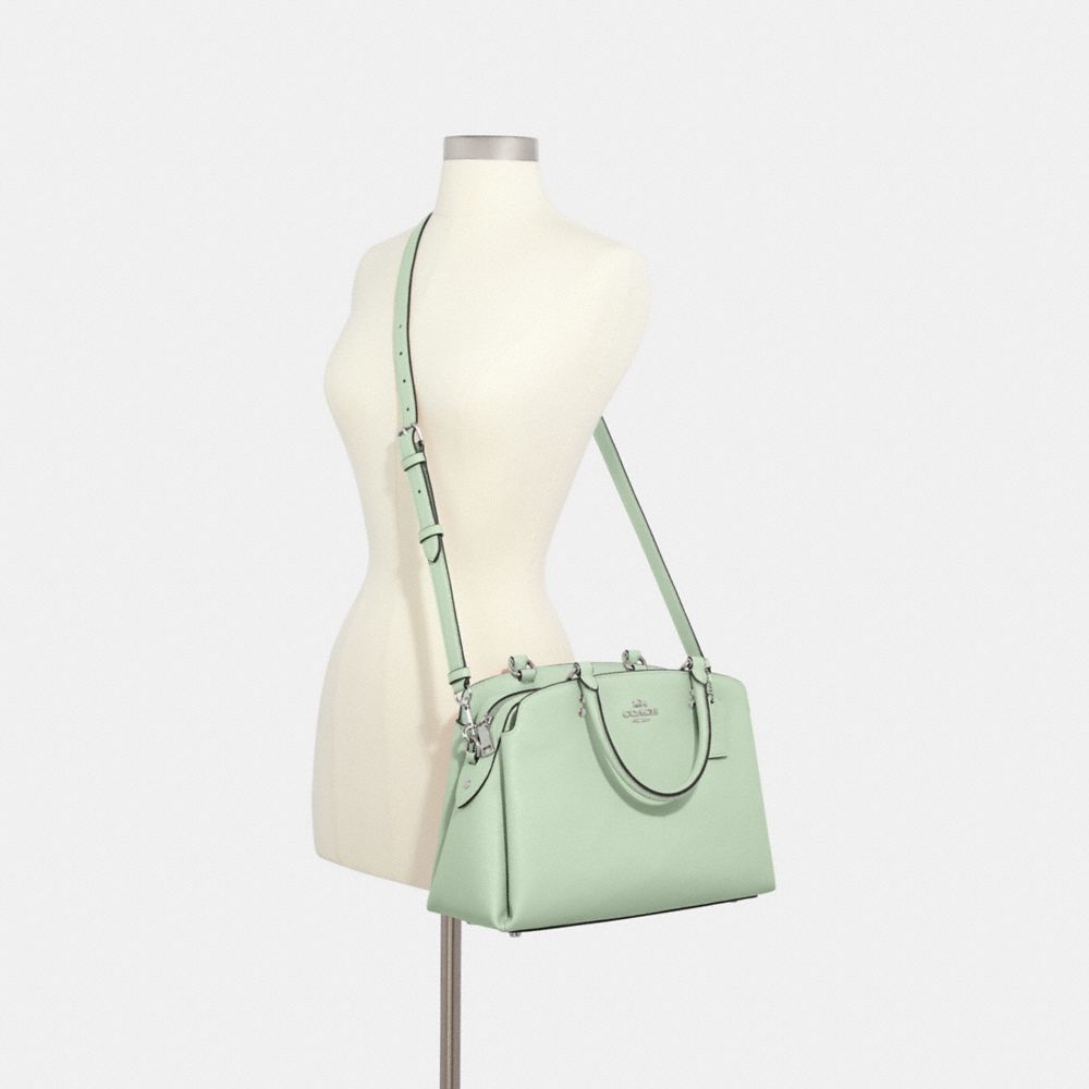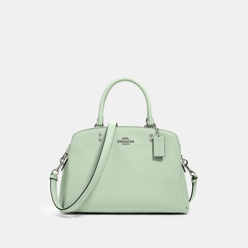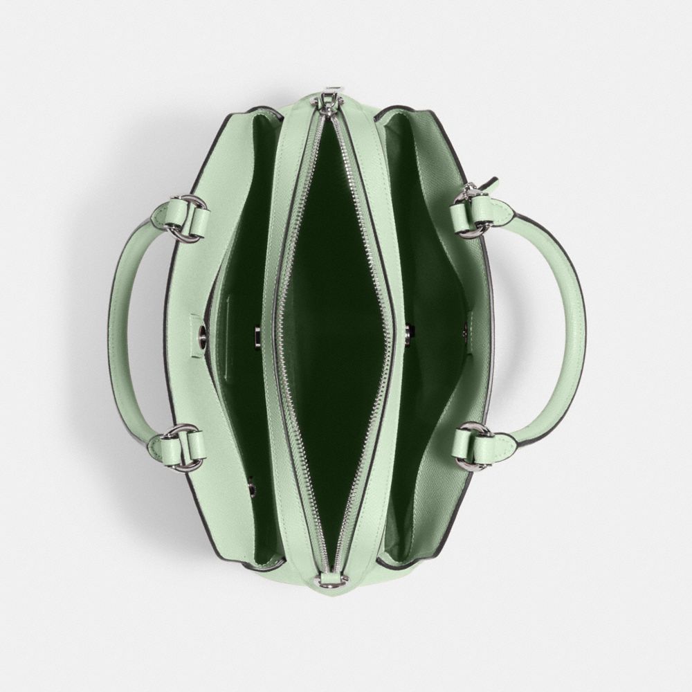 Crossgrain leather| Inside zip and multifunction pockets| Center zip compartment| Snap closure, fabric lining| Handles with 4 3/4" drop| Outside open pocket| Detachable strap with 20" drop for shoulder or crossbody wear| 12 3/4" (L) x 8 3/4" (H) x 5 1/4" (W)