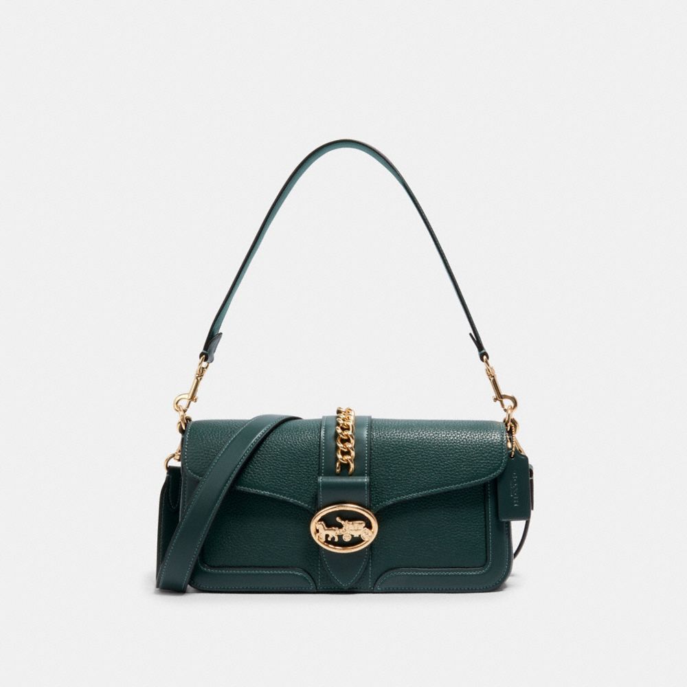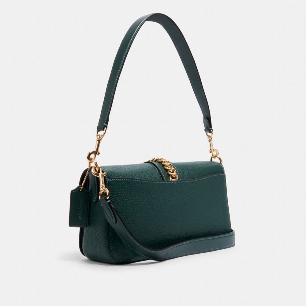 Refined pebble leather and smooth leather| Inside zip pocket| Snap closure, fabric lining| Detachable handle with 9" drop| Outside open pocket| Detachable strap with 22" drop for shoulder or crossbody wear| 10 3/4" (L) x 5 1/2" (H) x 2 3/4" (W)
