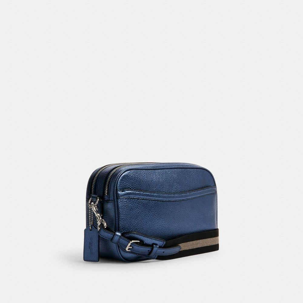 Metallic refined pebble leather| Inside multifunction pocket| Double zip closure, fabric lining| Outside slip pocket| Detachable strap with 22" drop for shoulder or crossbody wear| 9 3/4" (L) x 6 1/4" (H) x 3 1/2" (W)