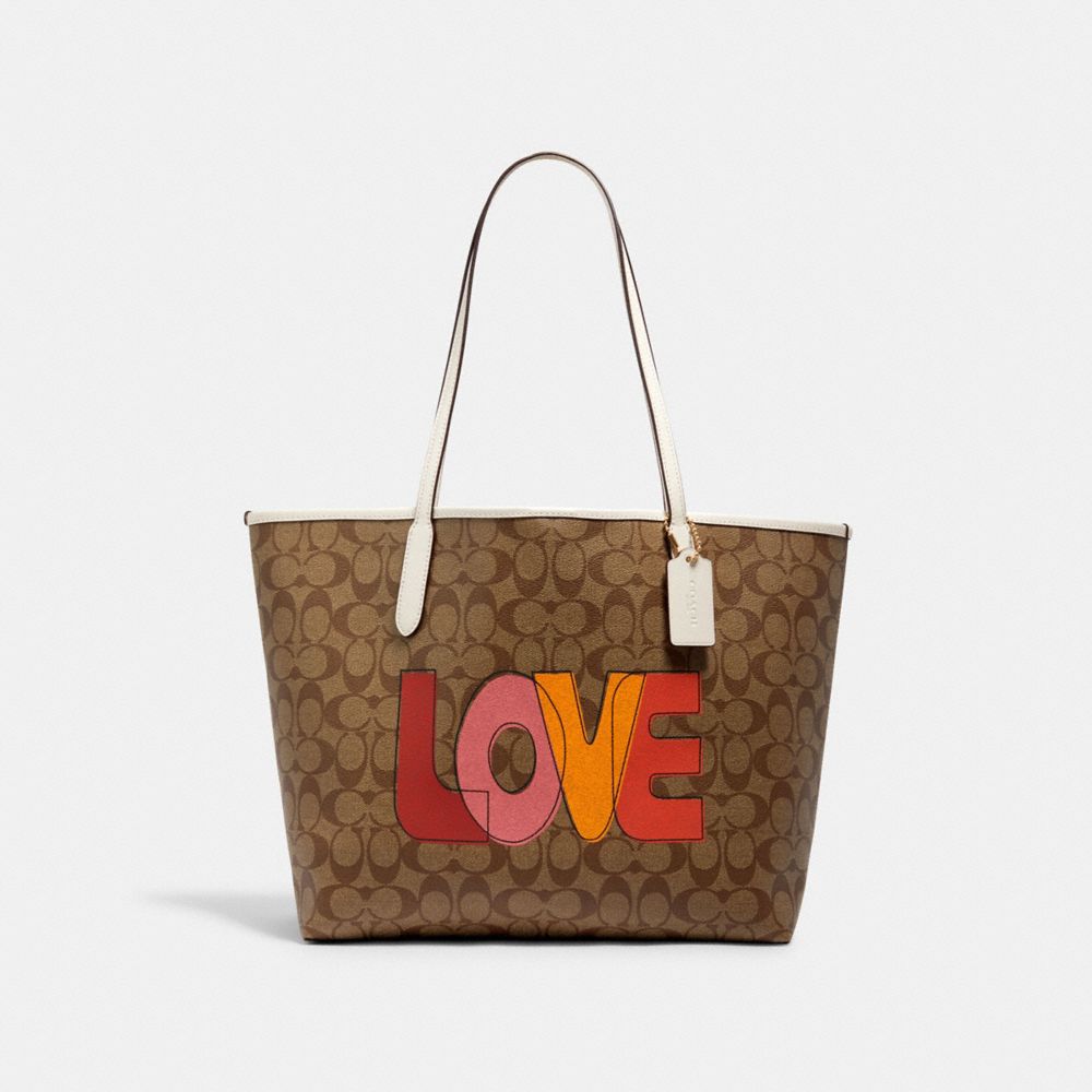 CITY TOTE IN SIGNATURE CANVAS WITH LOVE PRINT