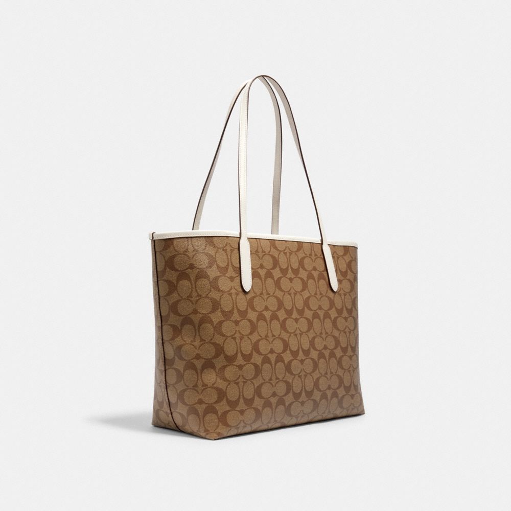 Signature coated canvas with smooth leather details| Inside zip pocket| Dogleash clip closure| Handles with 9 1/2" drop| 13" (L) x 11 1/2" (H) x 6 1/4" (W)