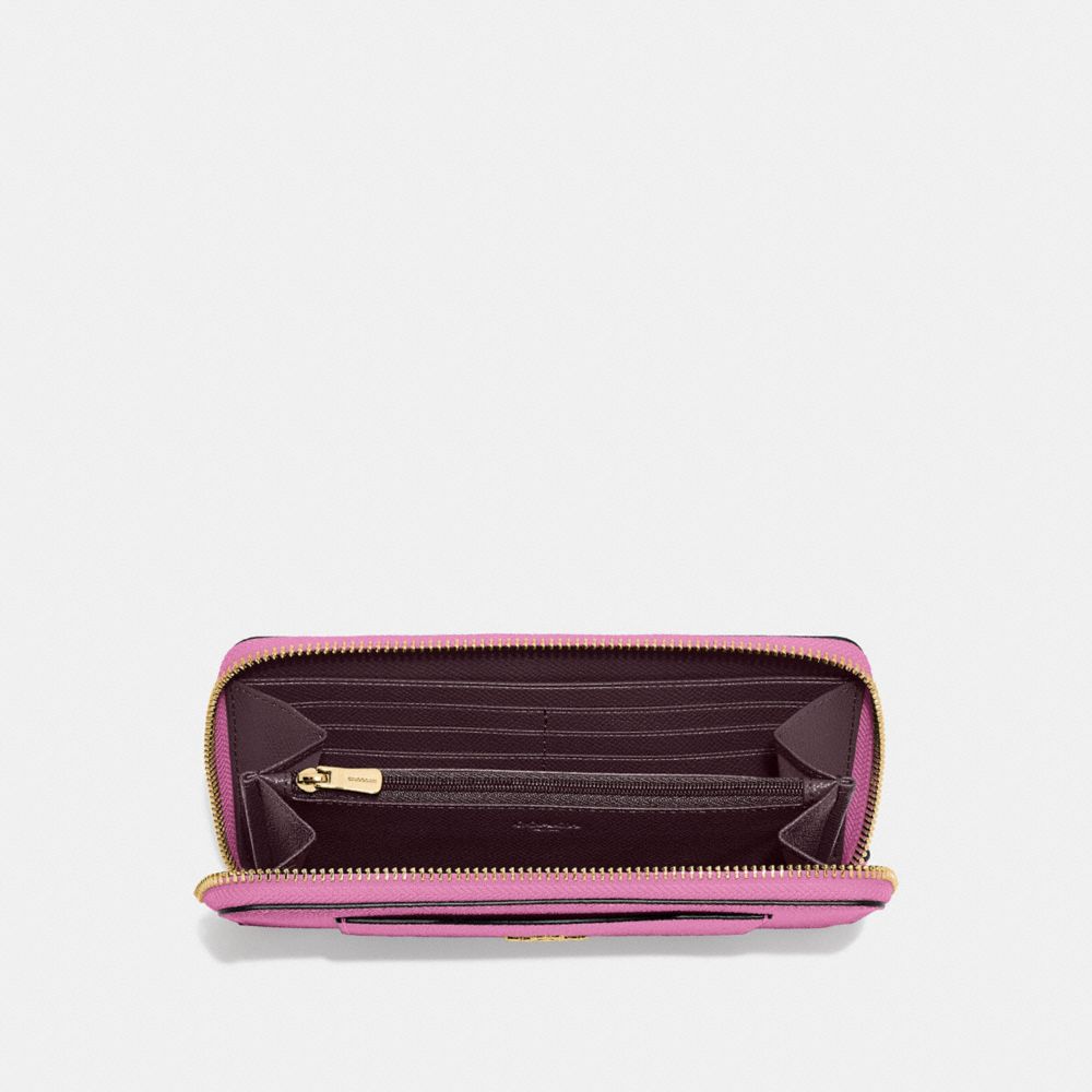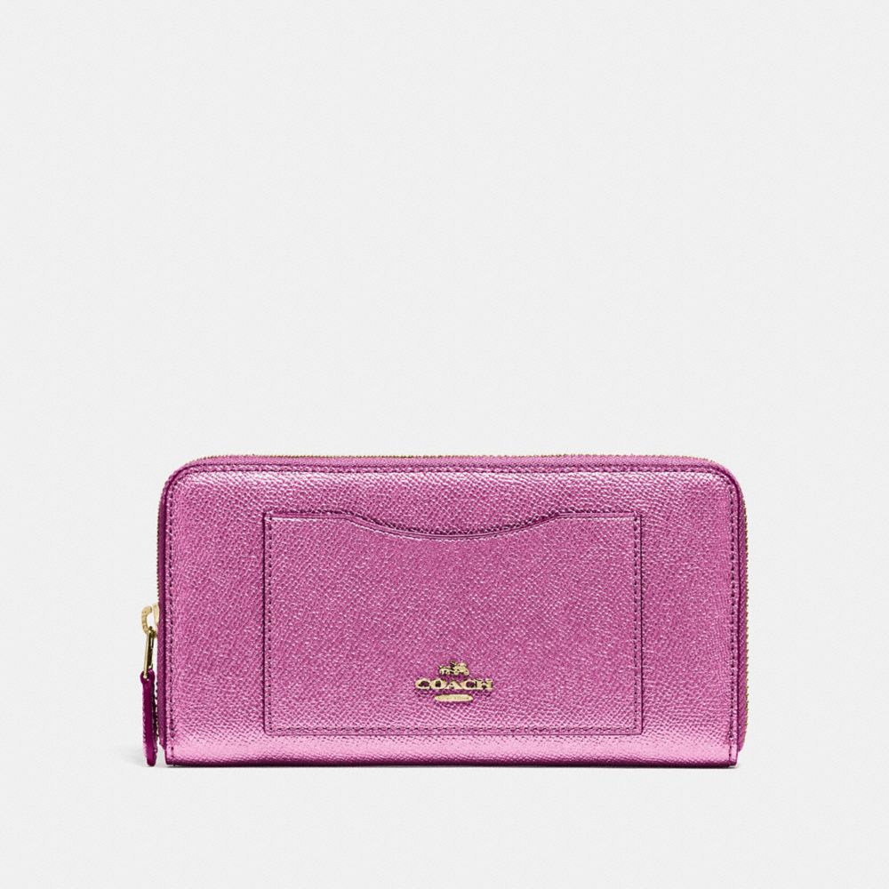 Metallic crossgrain leather| 12 credit card slots| Full-length bill compartments| Zip coin pocket| Zip-around closure| Outside open pocket| 7 1/2" (L) x 4" (H) x 3/4" (W)| Fits all phone sizes up to an iPhone X and Samsung S7 Edge