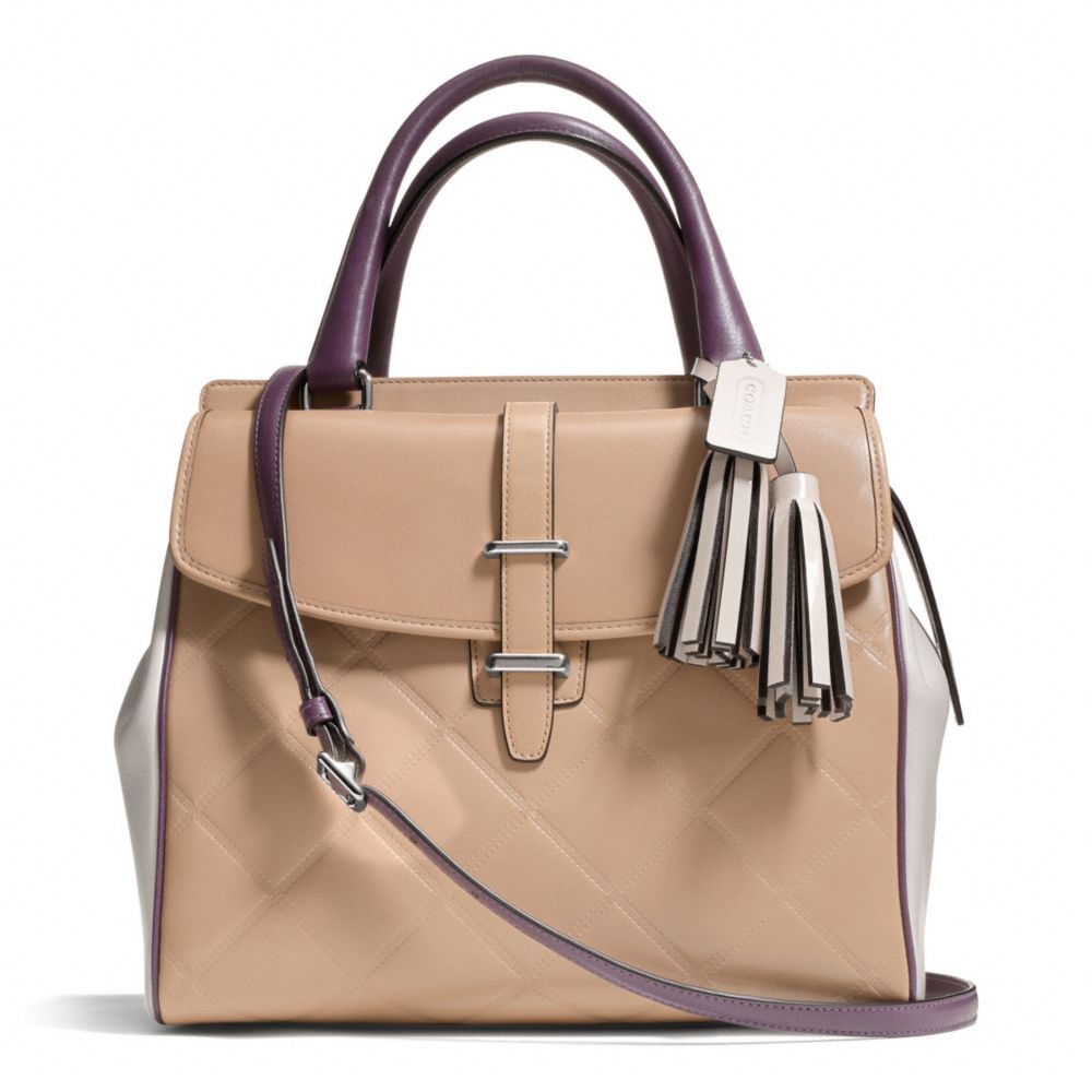EMBOSSED QUILTED LEATHER NORTH/SOUTH SATCHEL