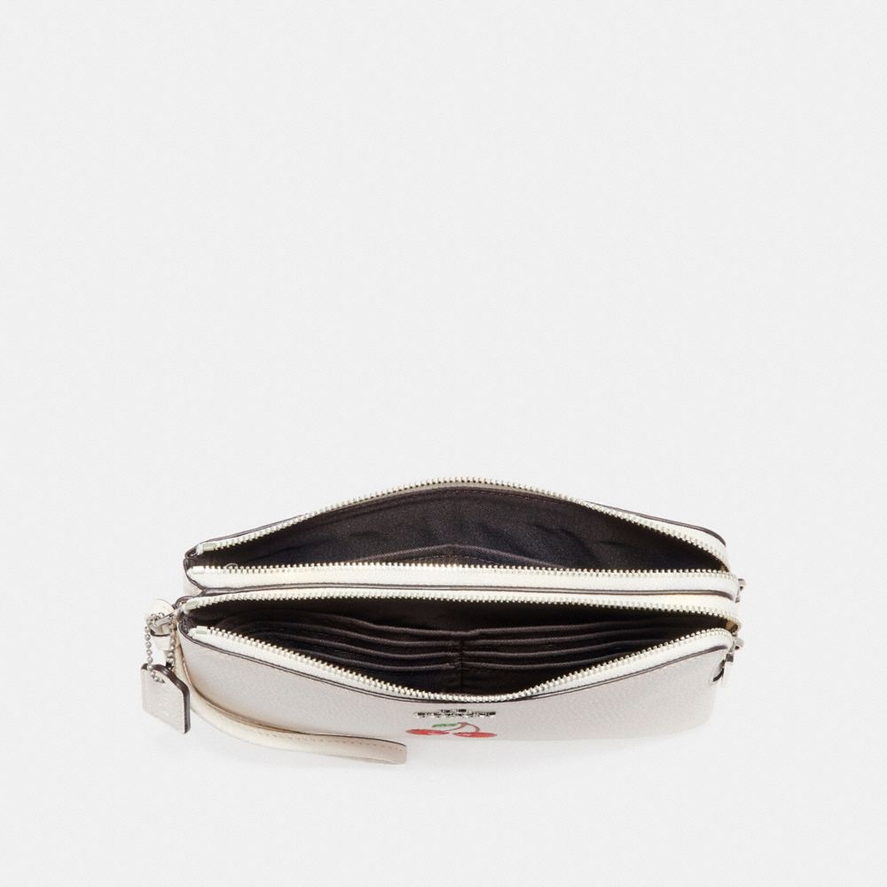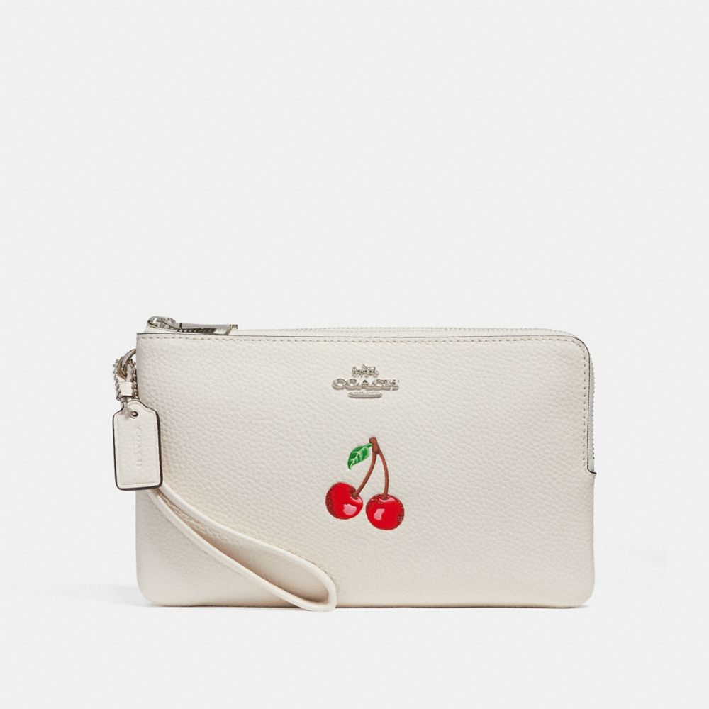 Polished pebble leather| Six credit card slots| Full-length bill compartment| Inside open pockets| Double zip closure, fabric lining| Wrist strap attached| 8 1/2" (L) x 4 1/2" (H) x 1 1/4" (W)| Fits all phone sizes up to an iPhone X and Samsung S7 Edge