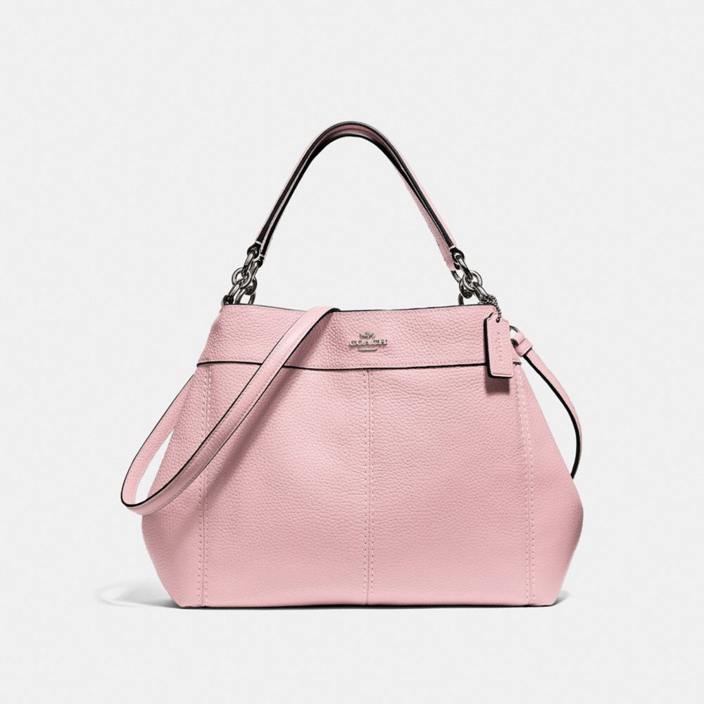 | Refined pebble leather| Inside zip and multifunction pockets| Snap closure, fabric lining| Handles with 5 1/2" drop| Detachable strap with 20" drop for shoulder or crossbody wear| 10 3/4" (L) x 9" (H) x 4 1/4" (W)