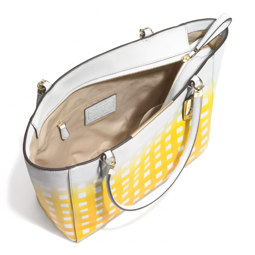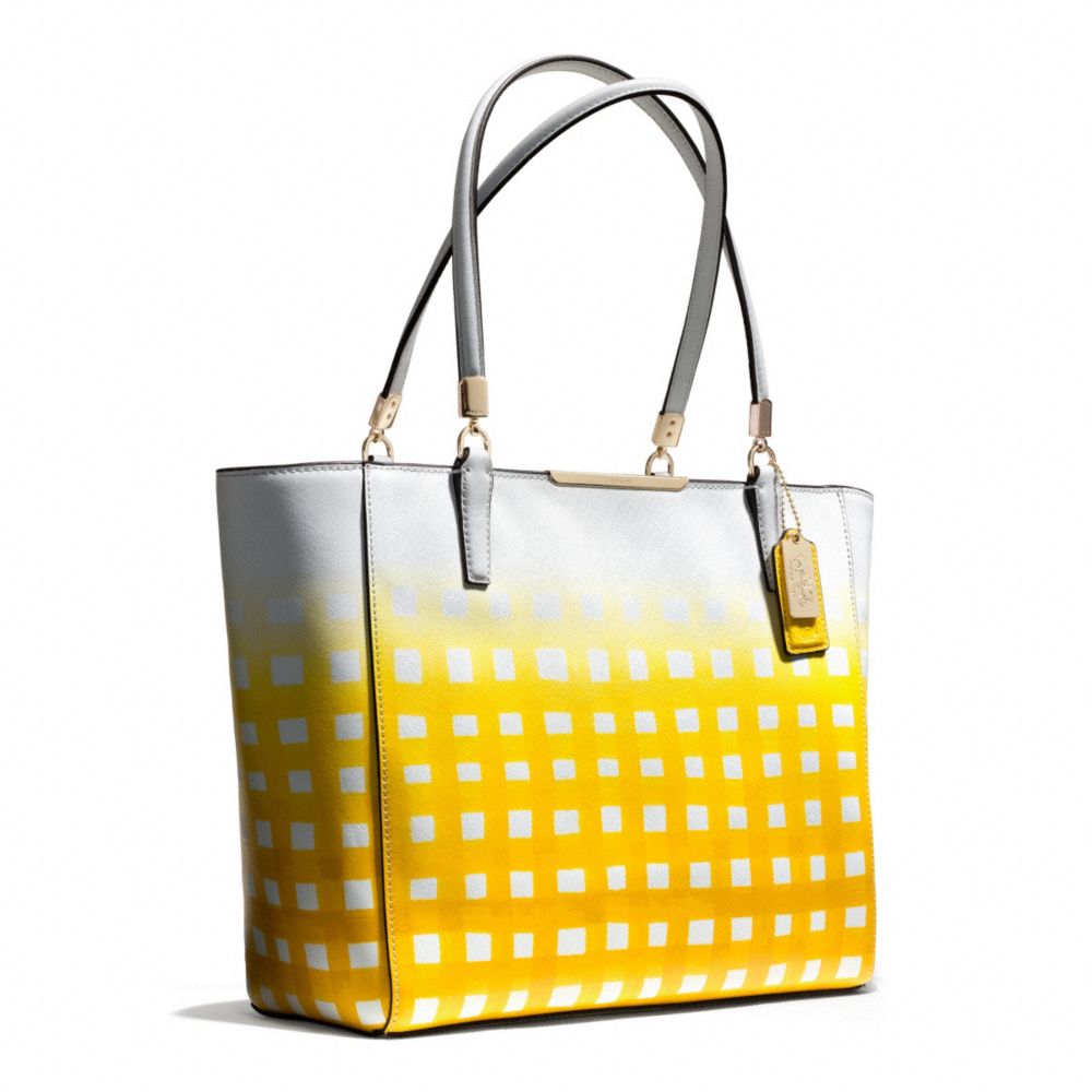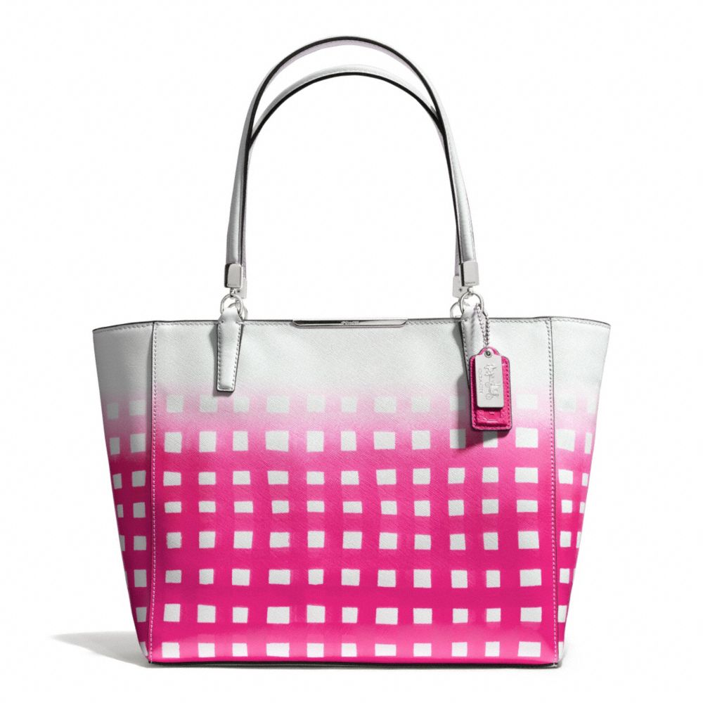 MADISON GINGHAM SAFFIANO LEATHER EAST/WEST TOTE