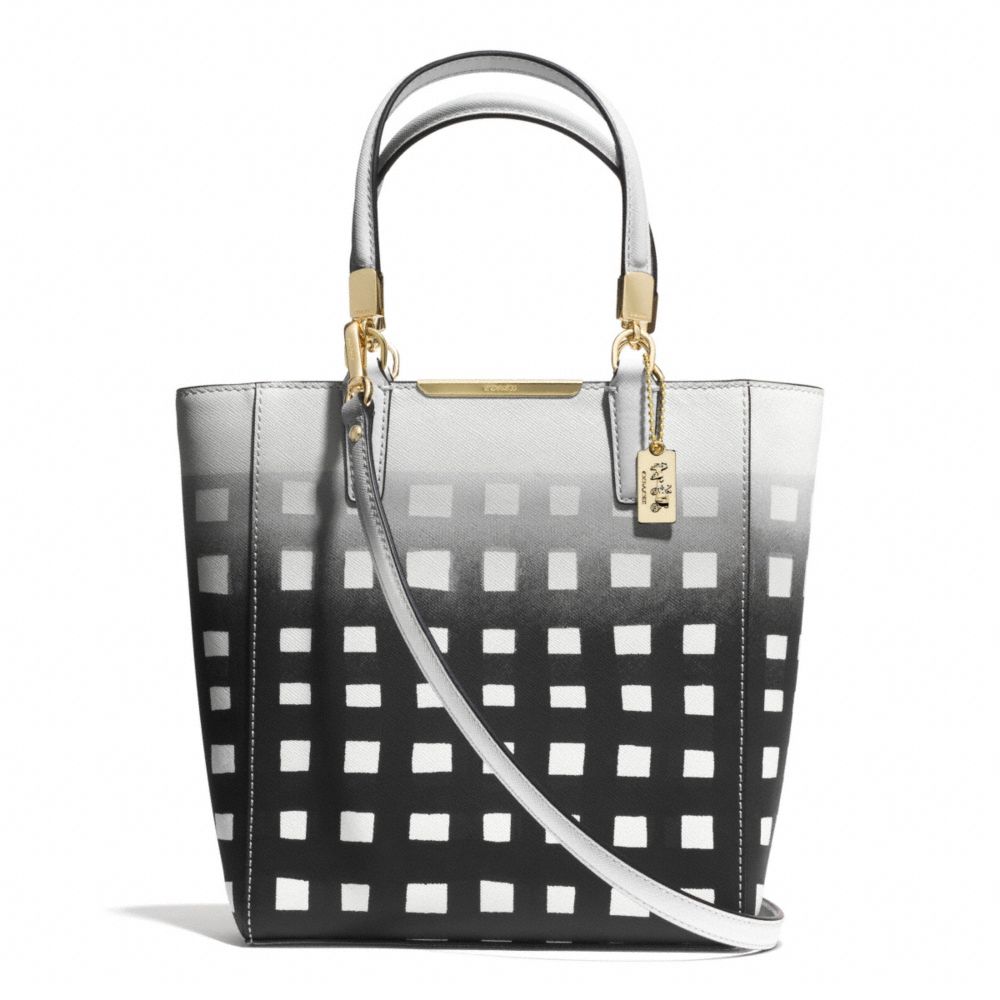 MADISON GINGHAM SAFFIANO LEATHER MINI NORTH/SOUTH TOTE