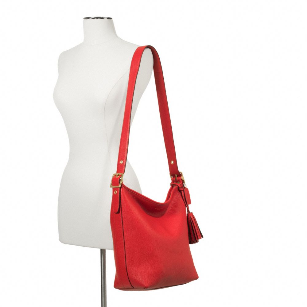 Strap with 18 3/4" drop for crossbody wear converts to double strap with 9 1/2" drop for shoulder wear
