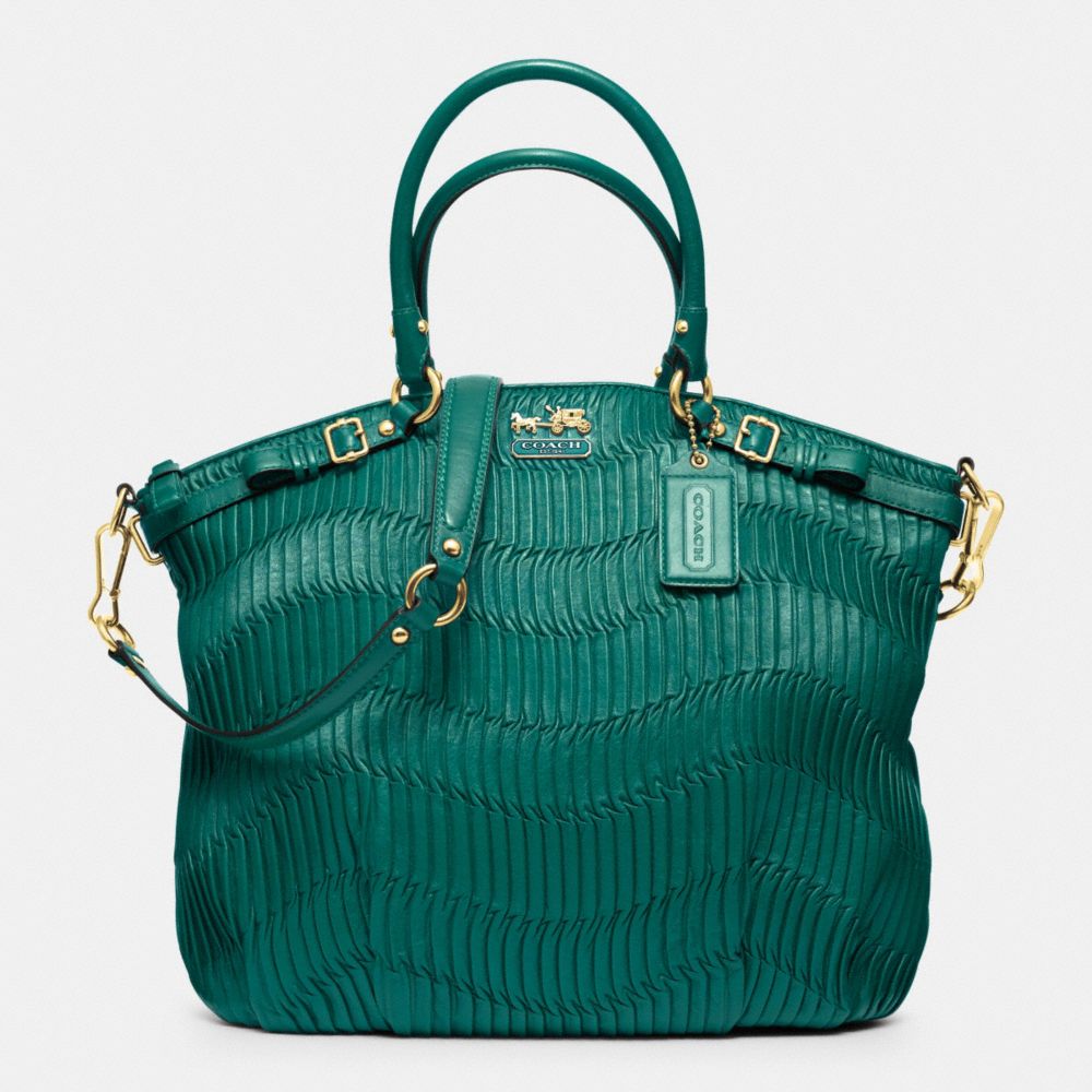 MADISON GATHERED LEATHER LINDSEY NORTH/SOUTH SATCHEL
