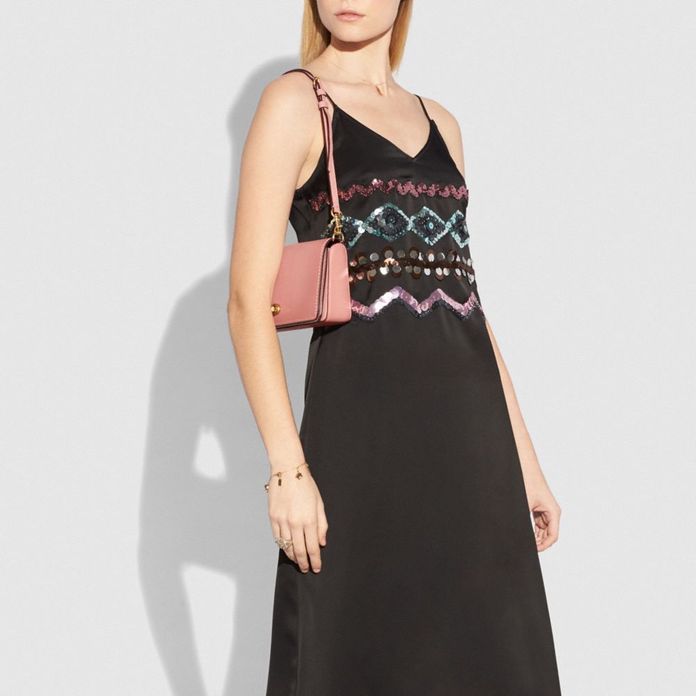 Glovetanned leather| Inside open and coin purse pockets| Turnlock closure, leather lining| Outside slip pocket| Detachable strap with 22" drop doubles up for three ways to wear: short or long on the shoulder or crossbody style| 9" (L) x 5" (H) x 2" (W)