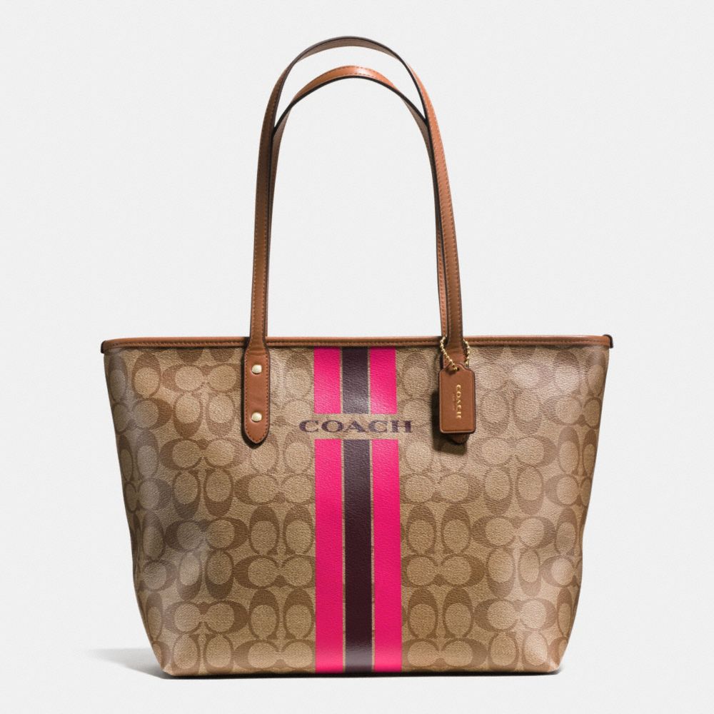 COACH VARSITY STRIPE CITY ZIP TOTE IN SIGNATURE
