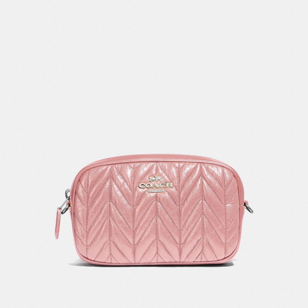 Calf leather| Inside multifunction pockets| Zip closure, fabric lining| Outside open pocket| Adjustable strap for wear at waist| 6 3/4" (L) x 4 1/2" (H) x 1 1/2" (W)
