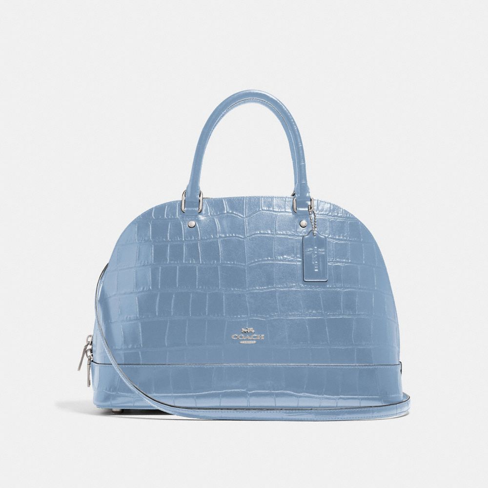 Crocodile-embossed leather| Inside cell phone and multifunction pockets| Zip closure, fabric lining| Handles with 4 1/4" drop| Outside slip pocket| Detachable strap with 21 1/2" for shoulder or crossbody wear| 13 1/2" (L) x 9 1/2" (H) x 4 3/4" (W)