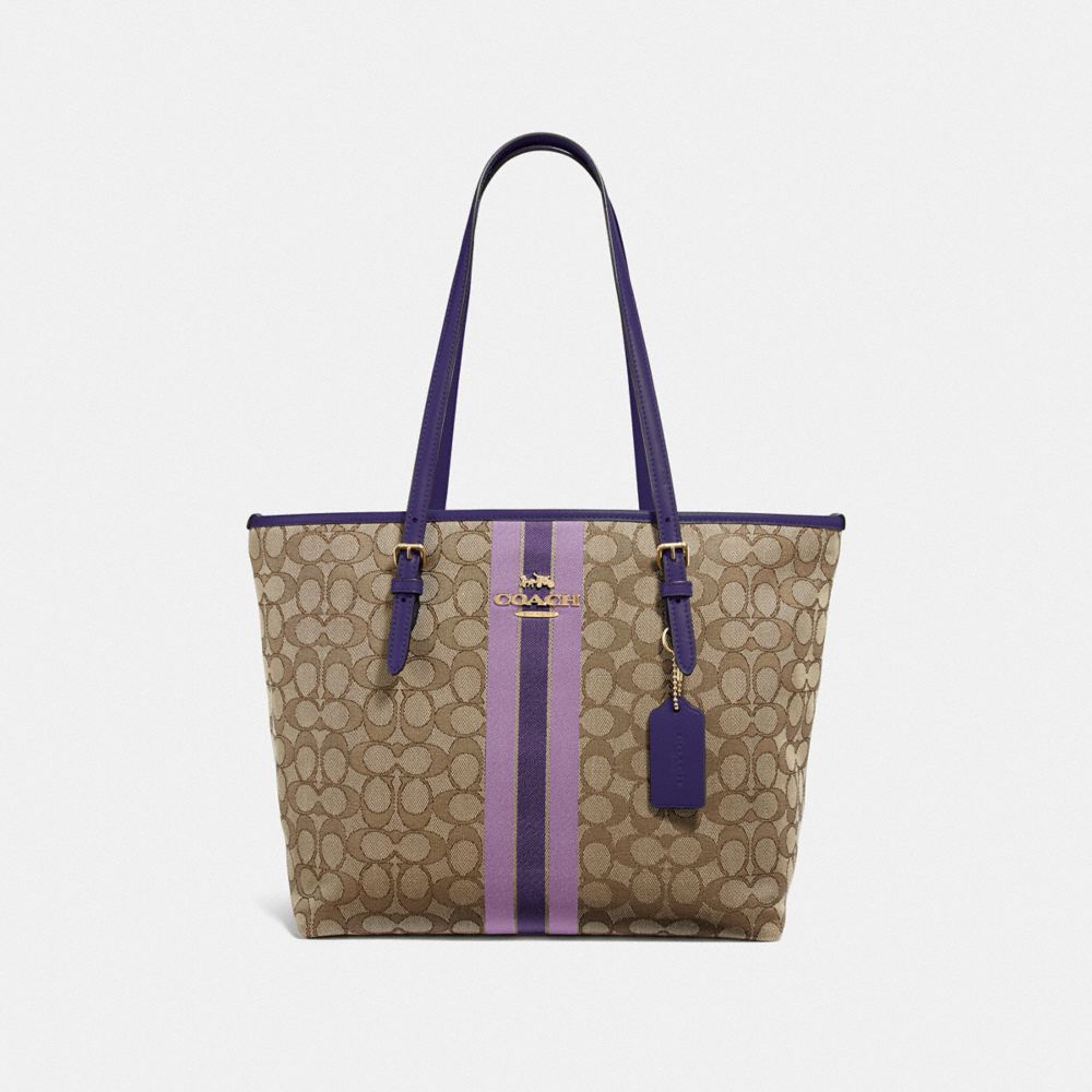 ZIP TOP TOTE IN SIGNATURE JACQUARD WITH STRIPE