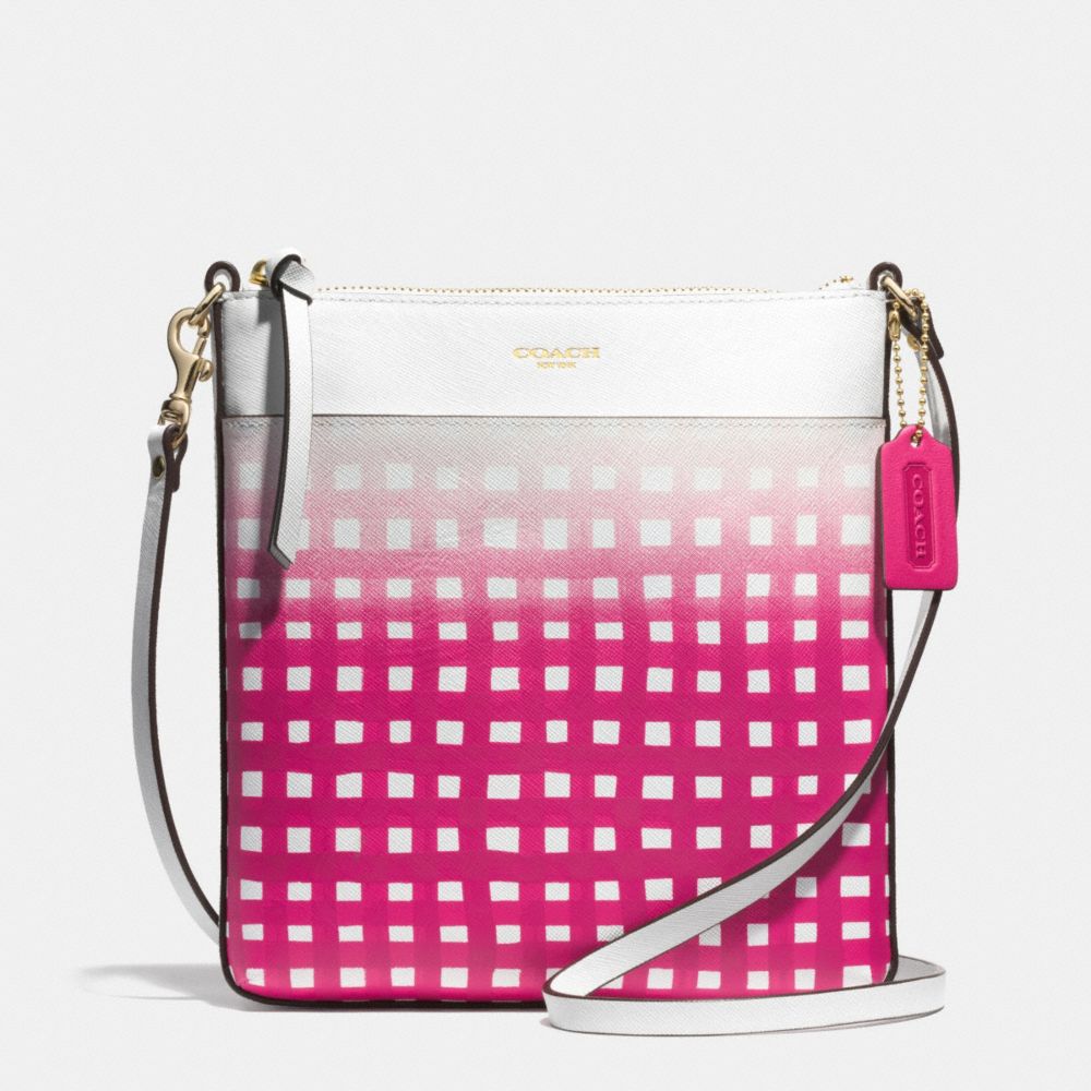GINGHAM SAFFIANO NORTH/SOUTH SWINGPACK