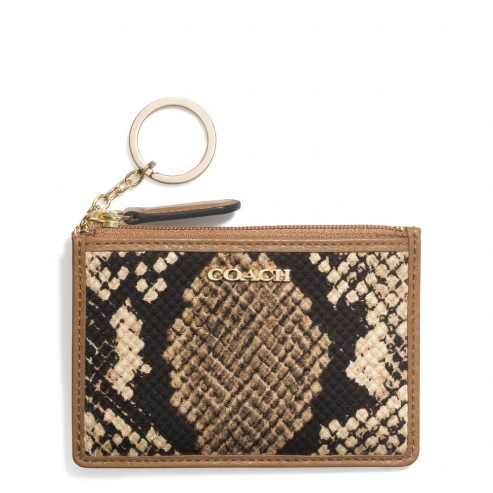 Details| | | Python print fabric with leather trim| Zip-top closure, fabric lining| ID window| 4 1/2" (L) x 3 1/4" (H)