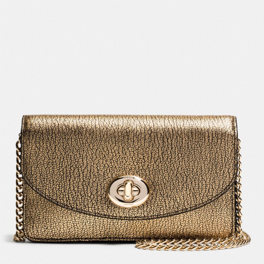CLUTCH CHAIN WALLET IN METALLIC PEBBLE LEATHER