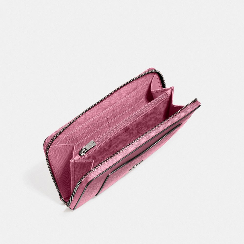 Crossgrain leather| 12 credit card slots| Full-length bill compartments| Zip coin pocket| Zip-around closure| Outside open pocket| 7 1/2" (L) x 4" (H) x 3/4" (W)| Fits all phone sizes up to an iPhone X and Samsung S7 Edge