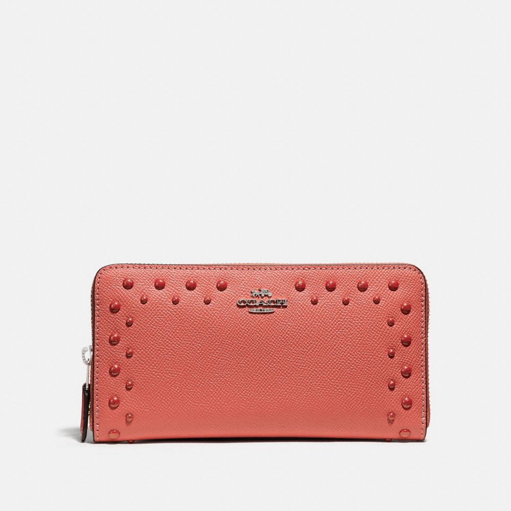 | Crossgrain leather| 12 credit card slots| Full-length bill compartments| Zip coin pocket| Zip-around closure| 7 1/2" (L) x 4" (H) x 3/4" (W)| Fits all phone sizes up to an iPhone X and Samsung S7 Edge