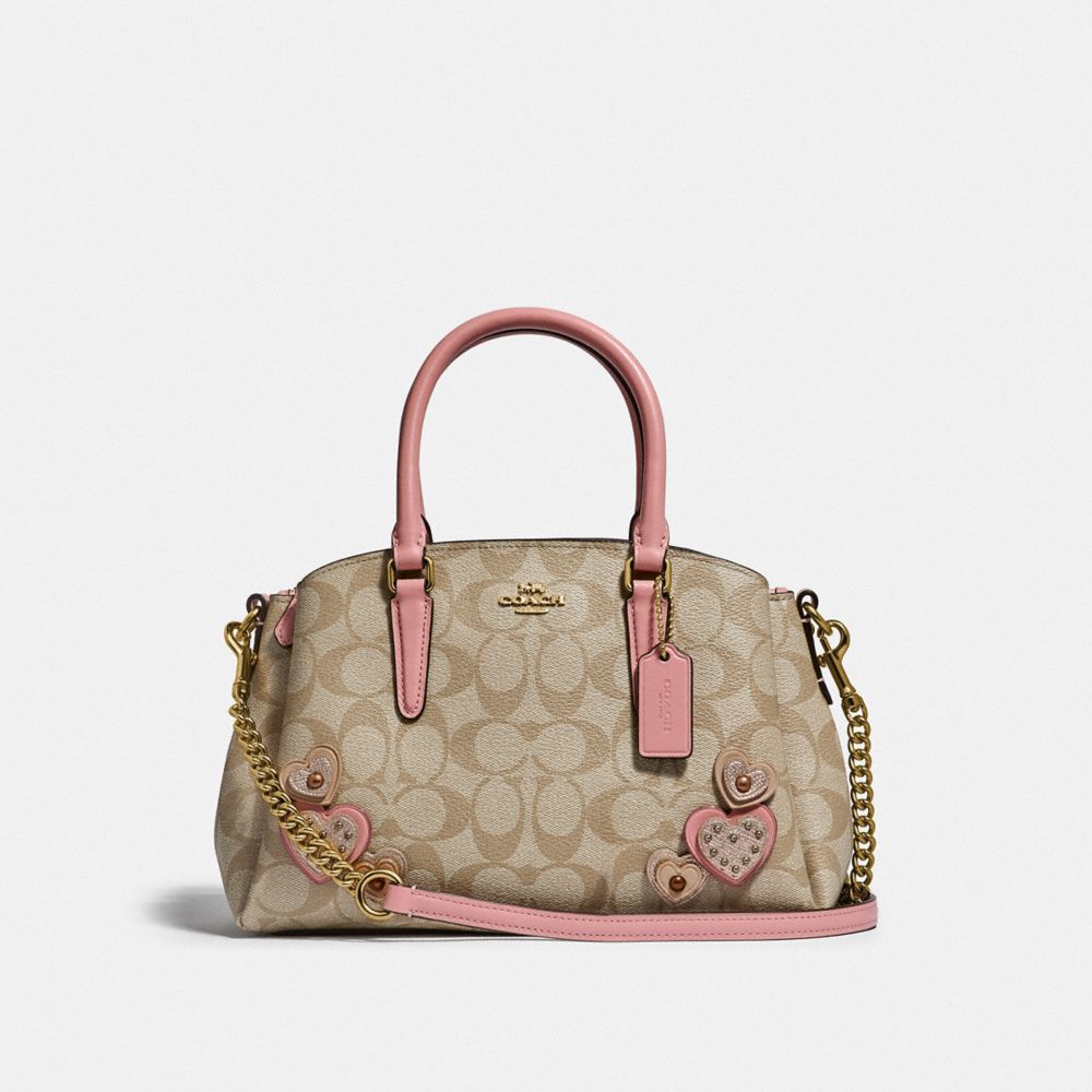 MINI SAGE CARRYALL IN SIGNATURE CANVAS WITH HEART APPLIQUE