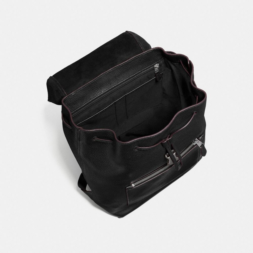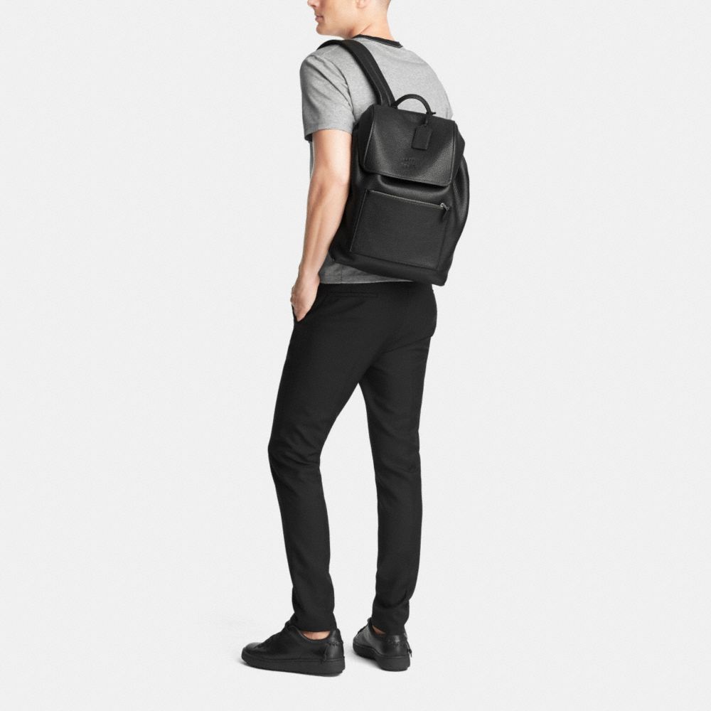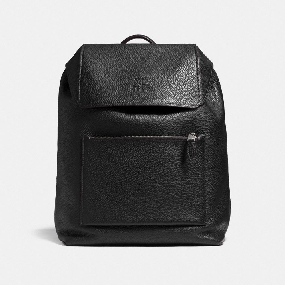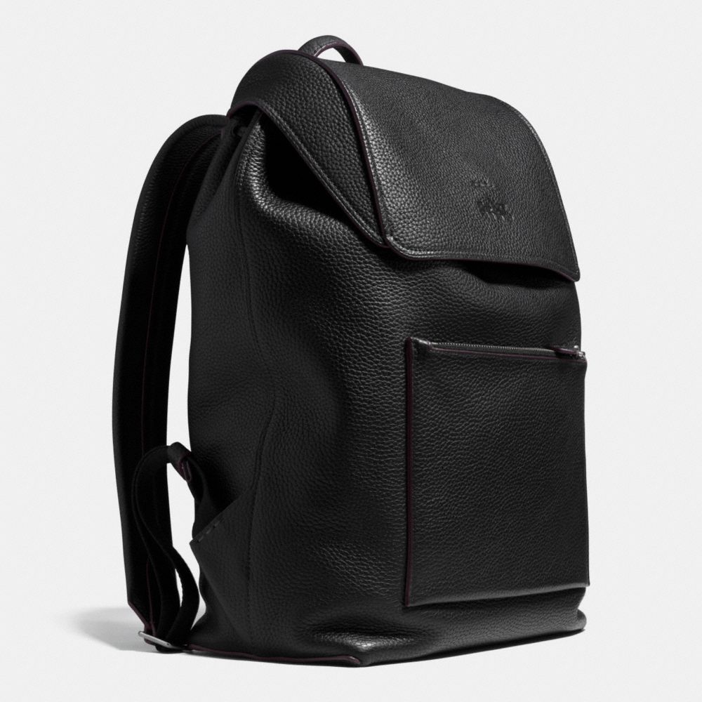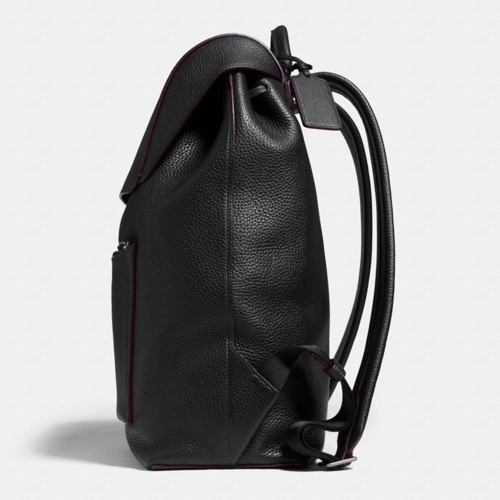 Pebble leather| Inside zip, cell phone and multifunction pockets| Inside sleeve with secure tab for a 13" laptop| Drawstring and clip closures, fabric lining| Top handle with 2 1/2" drop| Outside zip pockets| Outside zip access to interior| Adjustable shoulder straps | 11 3/4" (L) x 15 3/4" (H) x 5" (W)