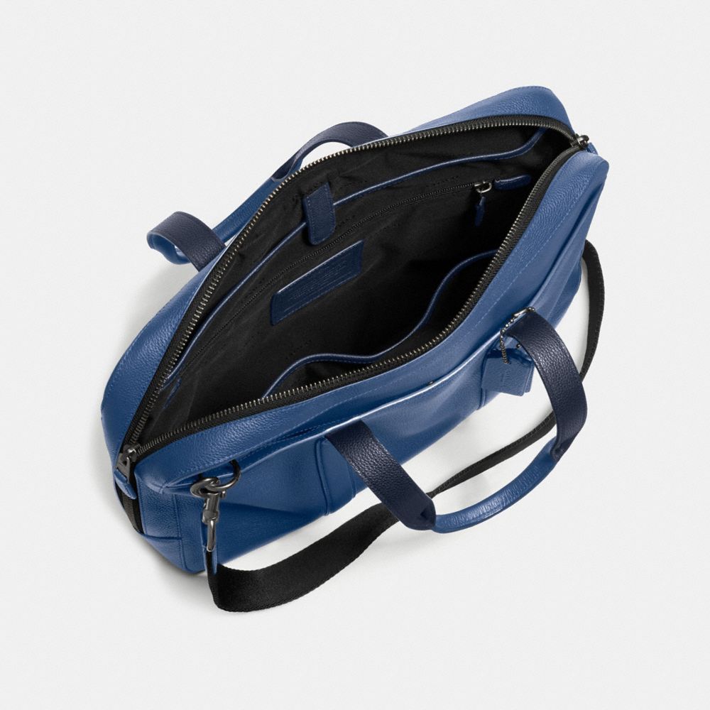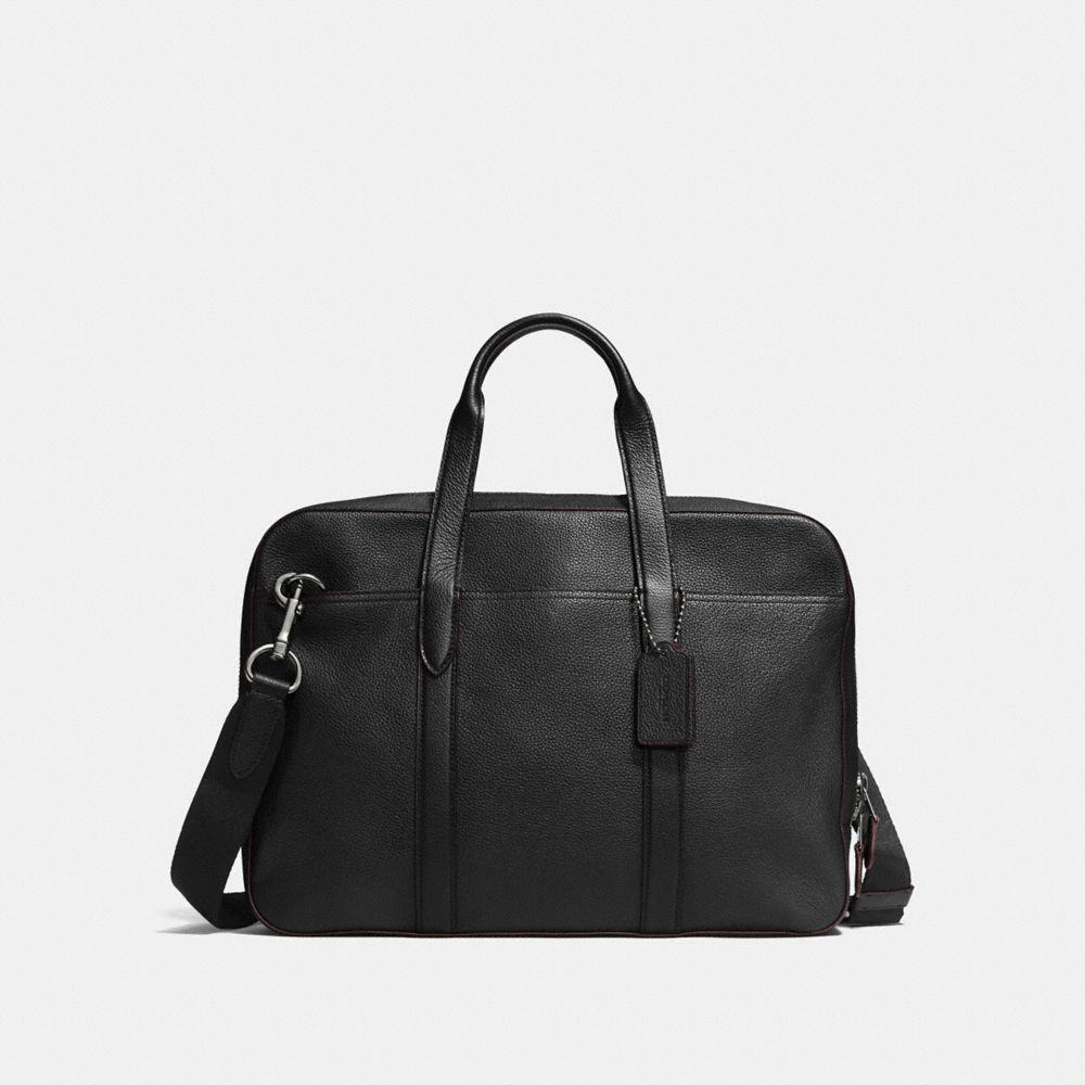 Refined pebble leather| Inside zip and multifunction pockets| Inside sleeve with secure tab for a 13" laptop| Zip-top closure, fabric lining| Handles with 5" drop| Two outside slip pockets with magnetic snap closures| Detachable nylon strap with 53" drop for shoulder or crossbody wear| 15 1/2" (L) x 11 1/4" (H) x 2 3/4" (W)