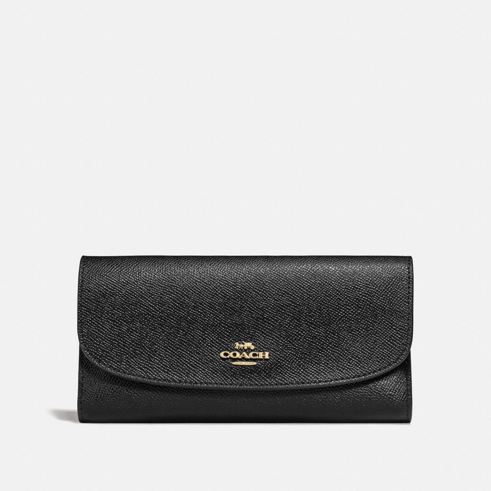 Crossgrain leather| 12 credit card slots| Full-length bill compartment| Removable checkbook holder| Snap closure| Outside zip coin pocket| 7 3/4" (L) x 4" (H)