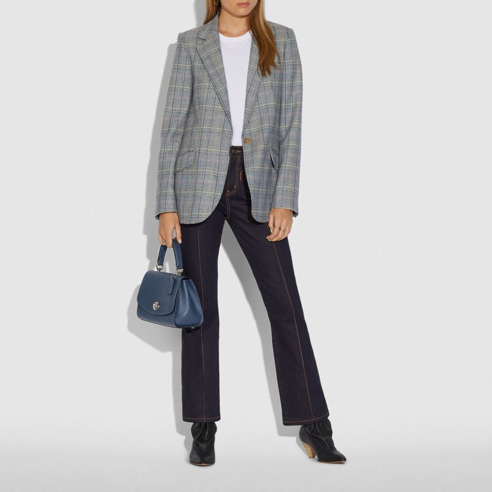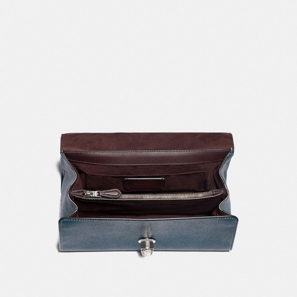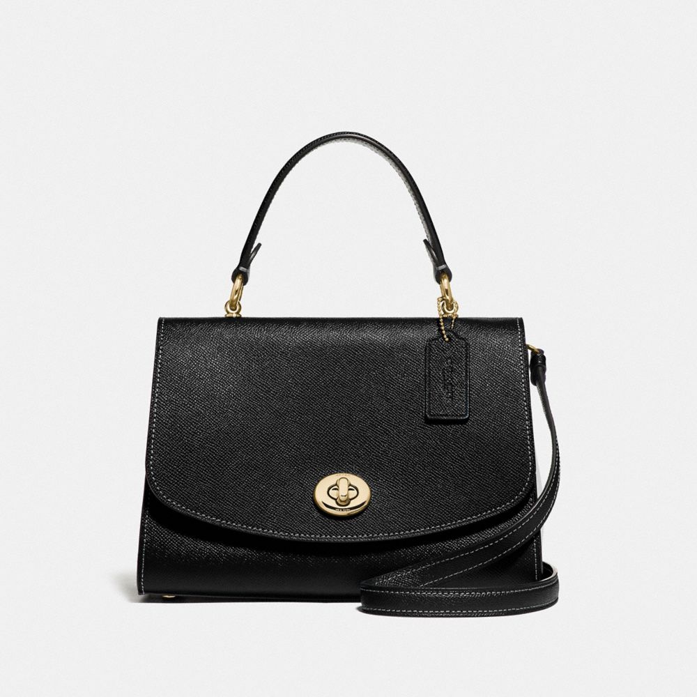 Crossgrain leather| Inside zip and multifunction pockets| Turnlock closure, fabric lining| Top handle with 4 3/4" drop| Outside slip pocket| Detachable strap with 22" drop for shoulder or crossbody wear| 9 3/4" (L) x 7" (H) x 4 1/4" (W)