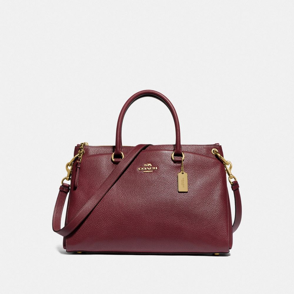 Refined pebble leather| Inside snap pockets| Zip-top closure, fabric lining| Handles with 8 3/4" drop| Outside slip pockets with magnetic snap closure| Detachable strap with 20" drop for shoulder or crossbody wear| 12 3/4" (L) x 8 3/4" (H) x 5 1/4" (W)