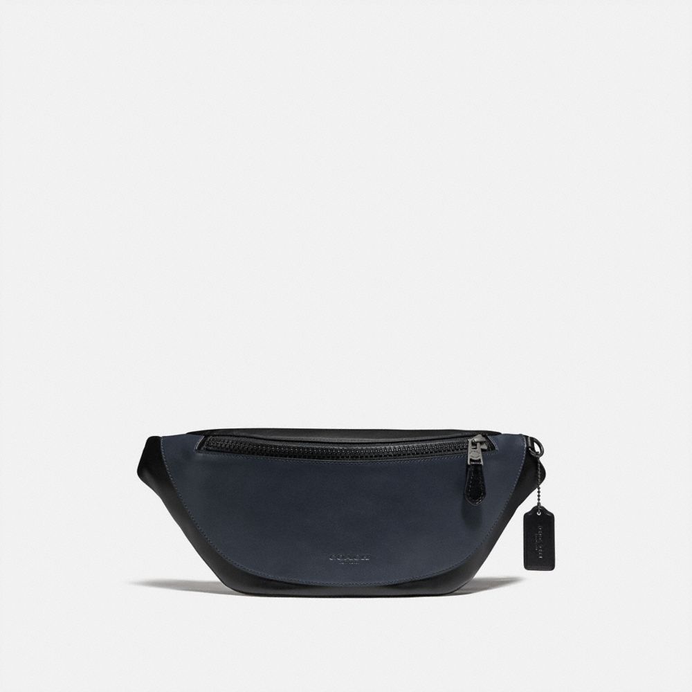 Refined calf leather| Inside multifunction pocket| Zip closure, fabric lining| Outside zip pocket| Adjustable strap for wear at waist| 13" (L) x 6 1/2" (H)