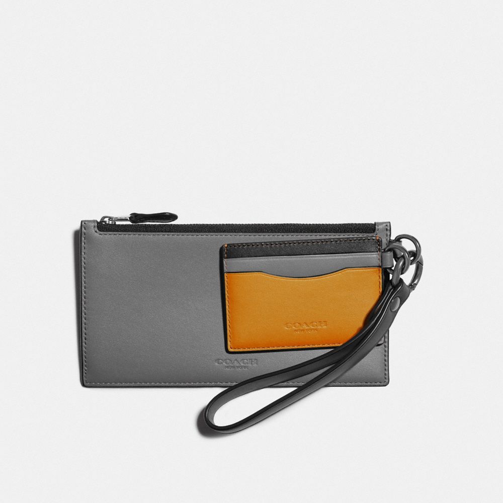 Refined calf leather| Four credit card slots| Zip pocket| Detachable wrist strap| Card case: 4" (L) x 2 3/4" (H)| Phone pouch: 11 1/2" (L) x 8 1/4" (H) x 2 1/2" (W)