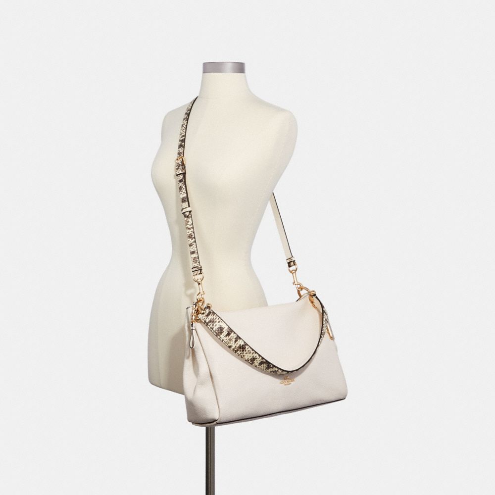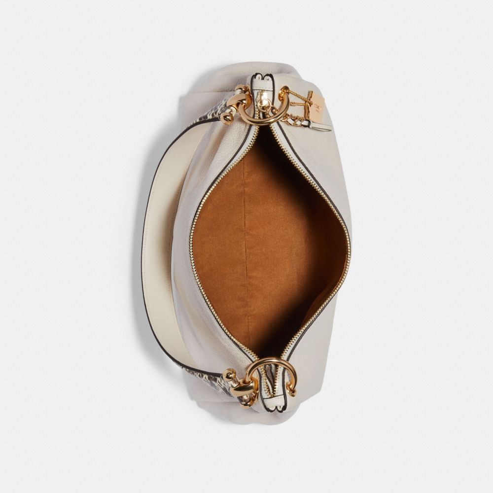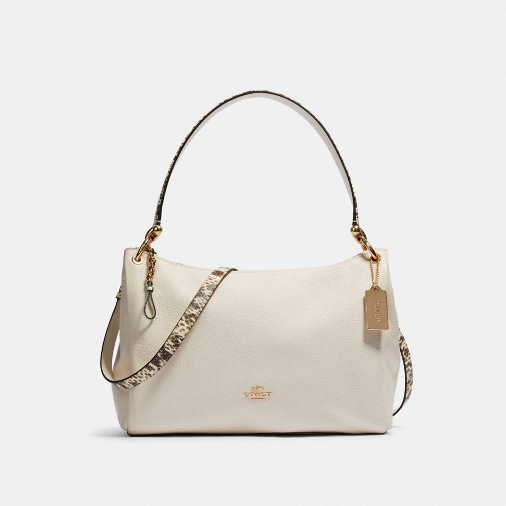 Refined pebble leather with snake-embossed leather details| Inside multifunction pocket| Zip-top closure, fabric lining| Handle with 8 3/4" drop| Detachable strap with 20" drop for shoulder or crossbody wear| 12 3/4" (L) x 8 3/4" (H) x 5 1/4" (W)