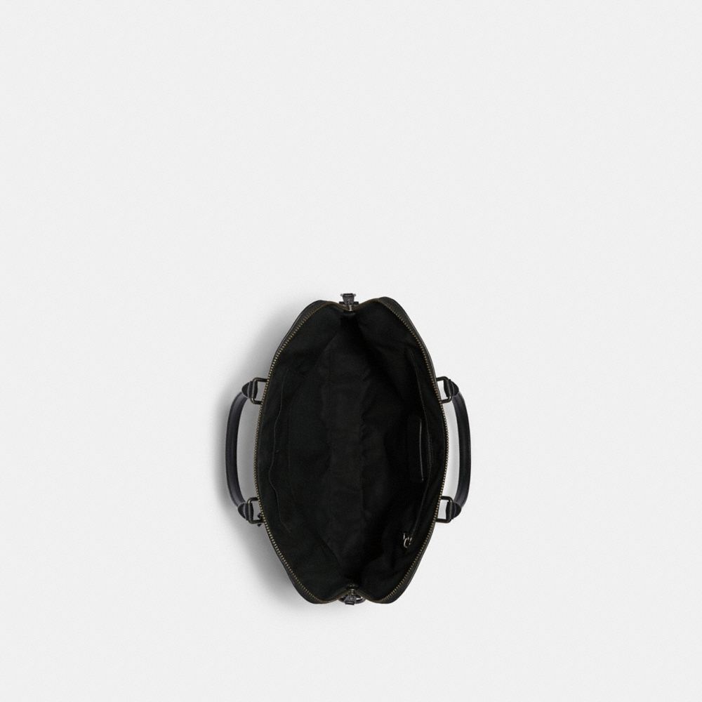 Signature coated canvas and refined calf leather| Inside zip, cell phone and multifunction pockets| Zip closure, fabric lining| Handles with 5" drop| Outside magnetic snap pockets| Detachable strap with 25" drop for shoulder or crossbody wear| 14 3/4" (L) x 11 1/4" (H) x 2" (W)