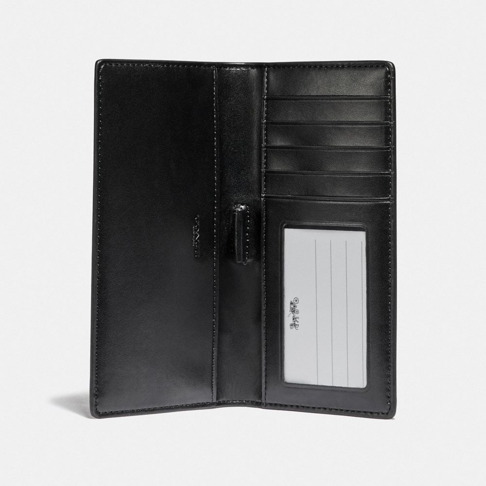 Signature coated canvas| Four credit card slots| ID window| Inside open pockets| 6 3/4" (L) x 3 1/2" (H)