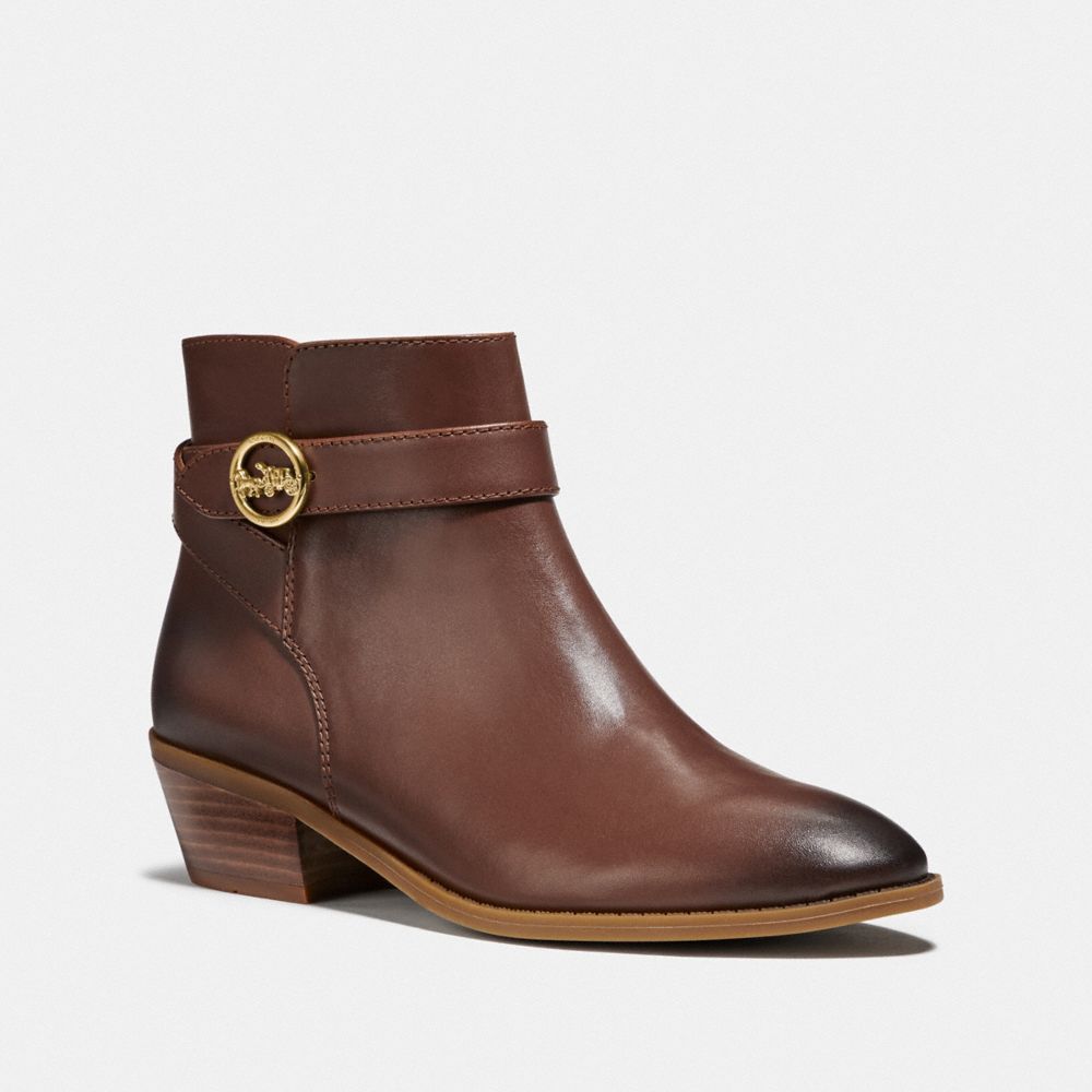 Leather upper| Man-made leather lining and footbed| Rubber outsole| Zip closure| Shaft: 4 1/4" height, 10 1/2" circumference| 1 1/2" heel