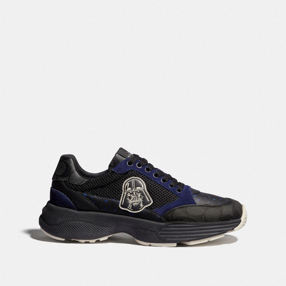 Signature coated canvas, polyester, suede, and mesh upper| Fabric lining and footbed| Rubber outsole| Lace-up closure| © & ™ Lucasfilm Ltd.| Star Wars x Coach