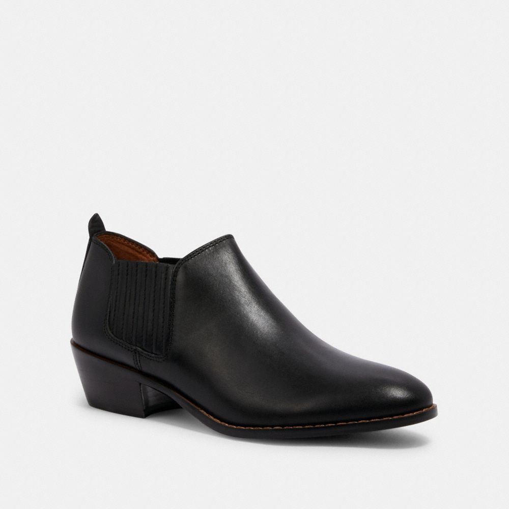 Leather upper| Man-made leather lining and footbed| Rubber outsole| Slip on| Shaft: 2 1/2" height, 10 1/2" circumference| 1 1/2" heel