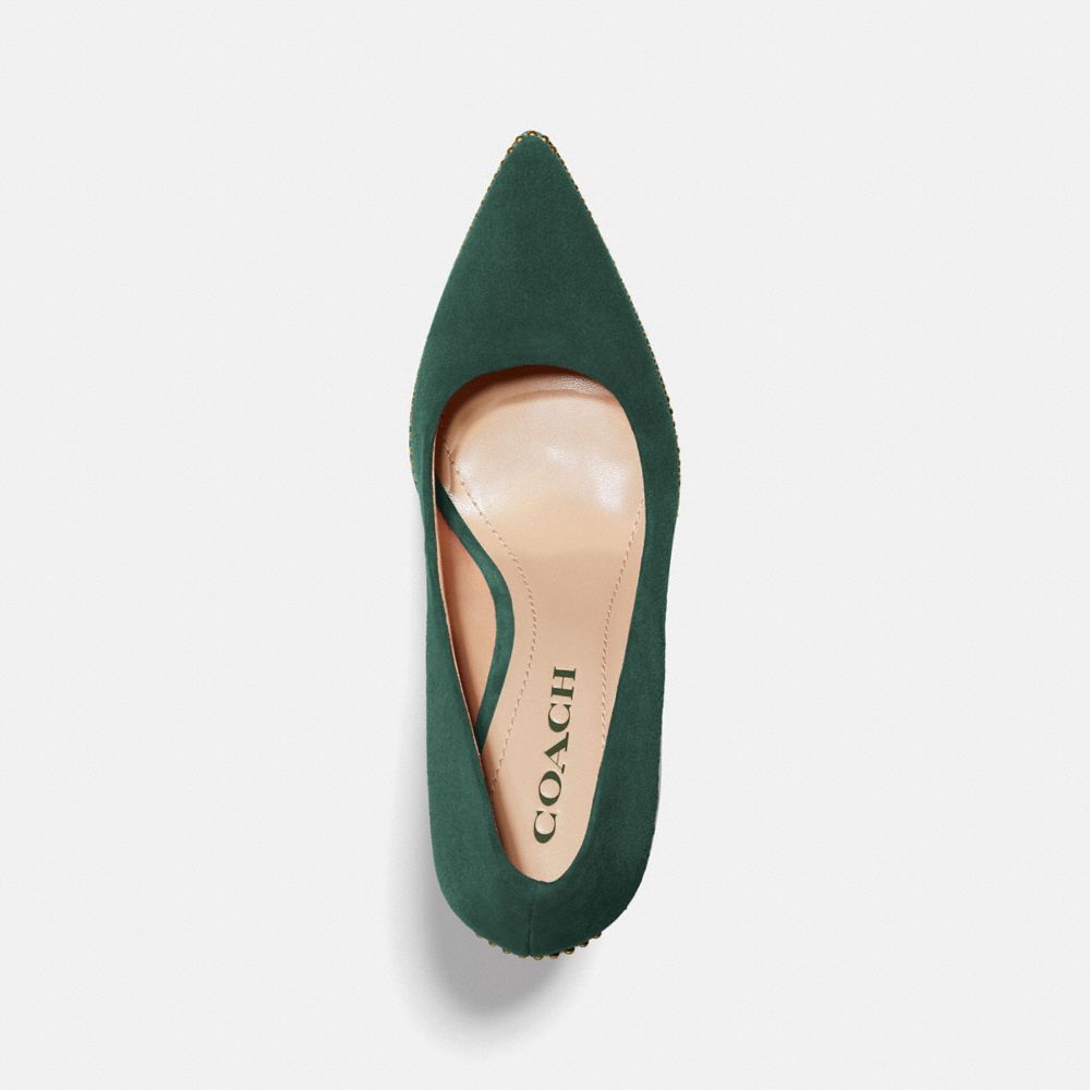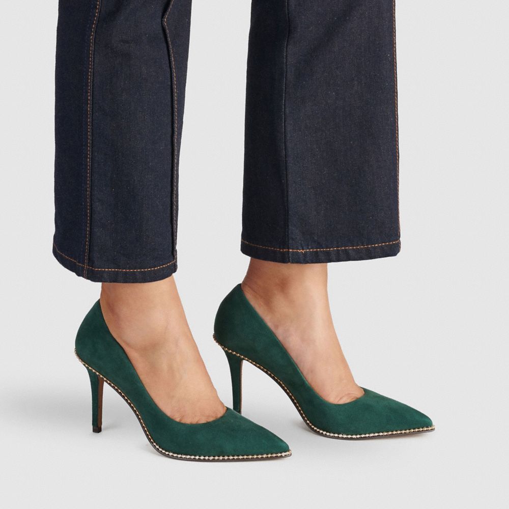 Suede upper| Man-made leather lining, leather footbed| Rubber outsole| Slip on| 3 1/2" heel