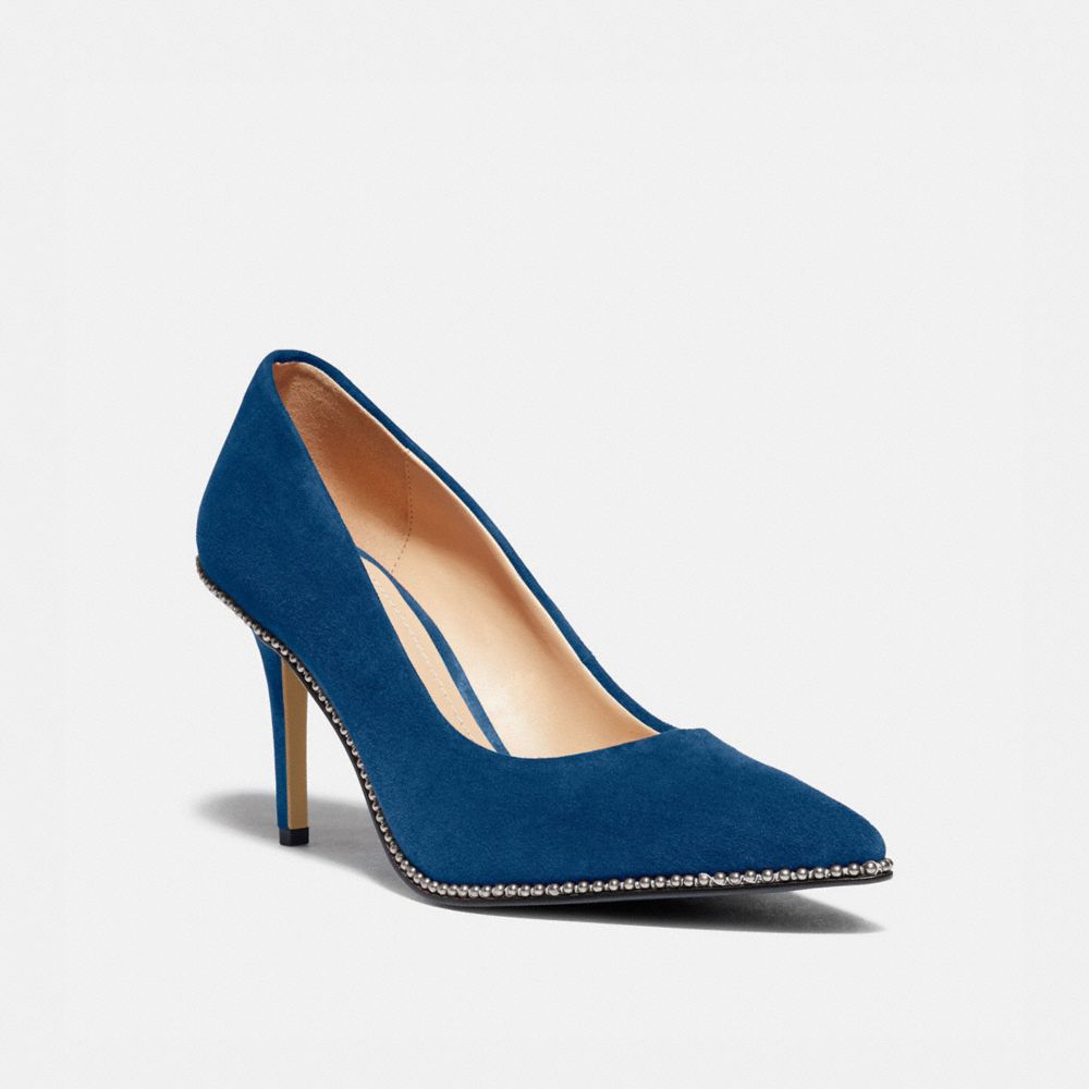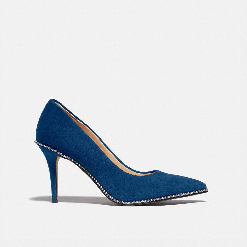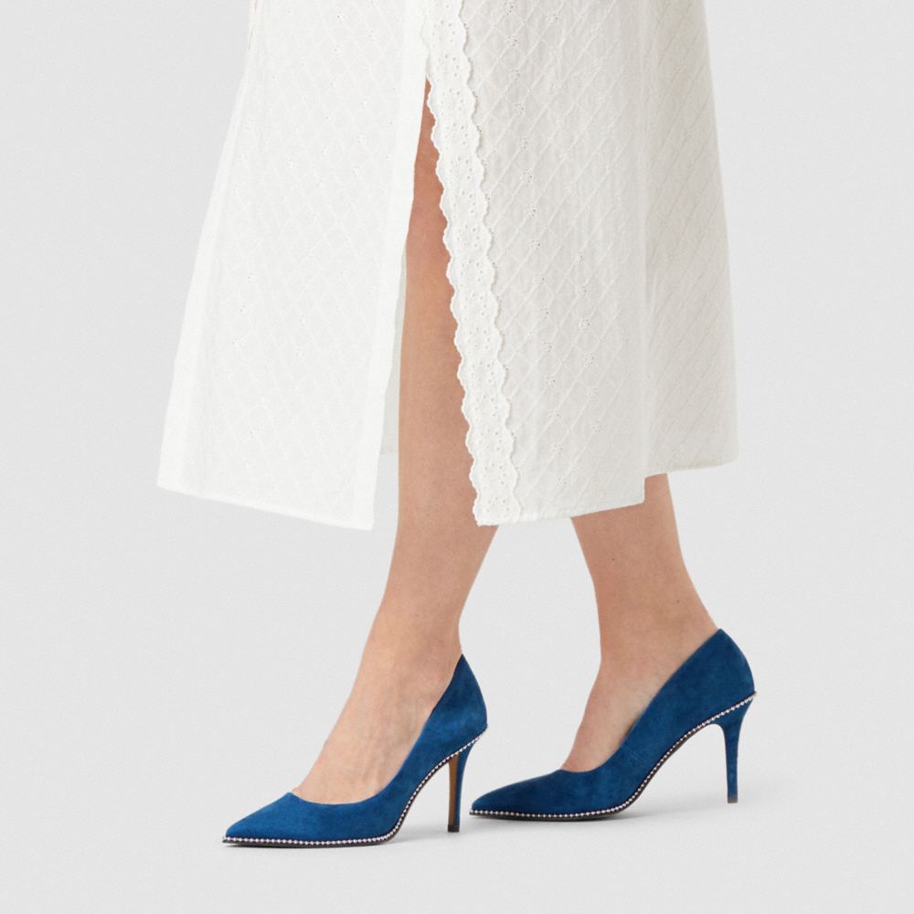 Suede upper| Man-made leather lining, leather footbed| Rubber outsole| Slip on| 3 1/2" heel