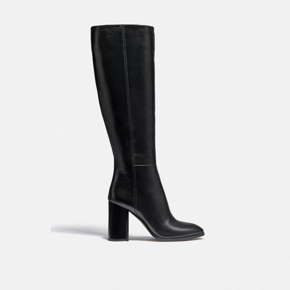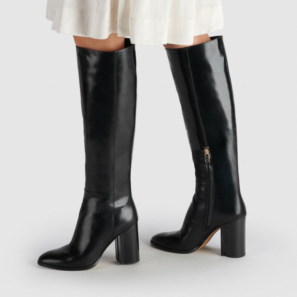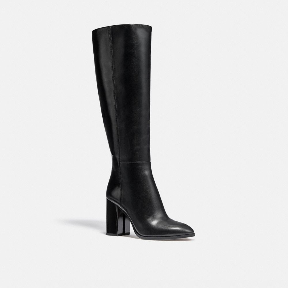 Leather upper| Fabric and man-made leather lining, man-made leather footbed| Rubber outsole| Zip closure| Shaft: 15 1/2" height, 15" circumference| 3 1/2" heel