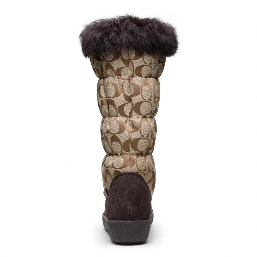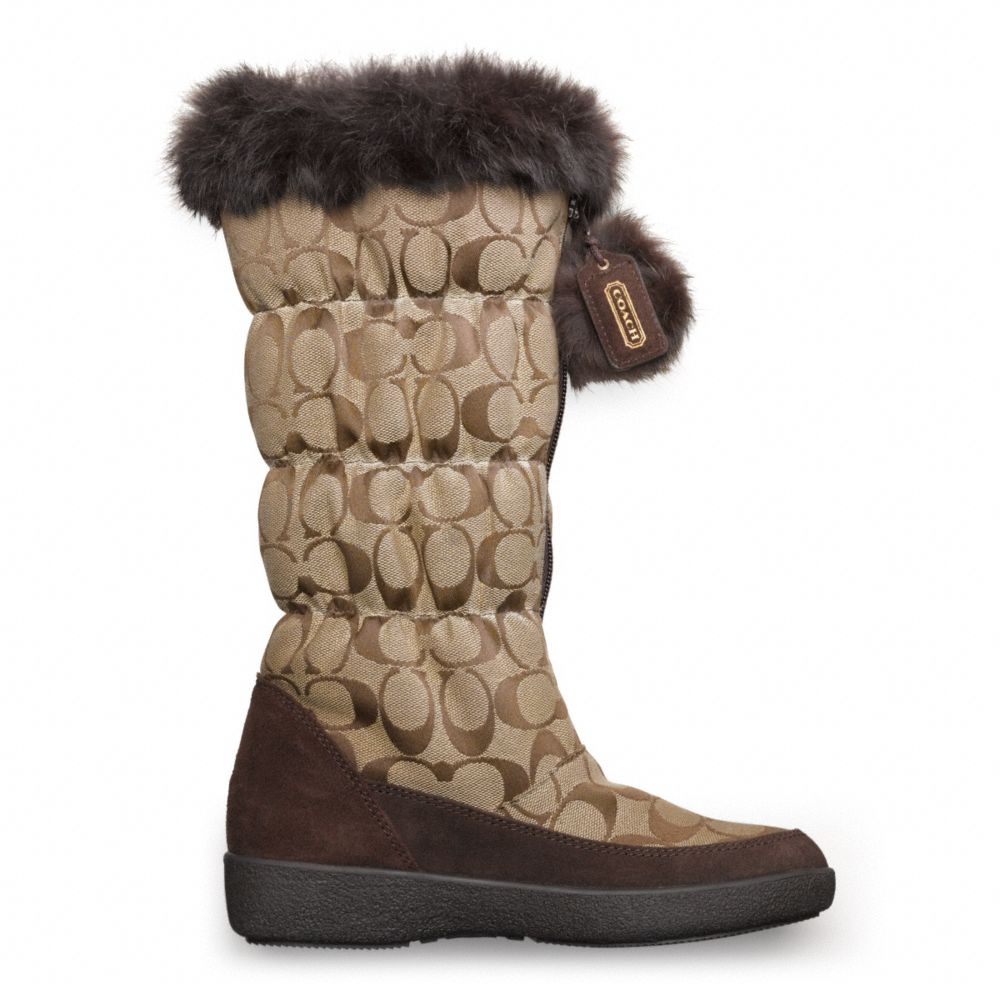 Signature fabric with suede and rabbit fur trim