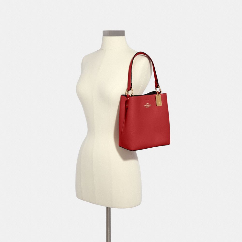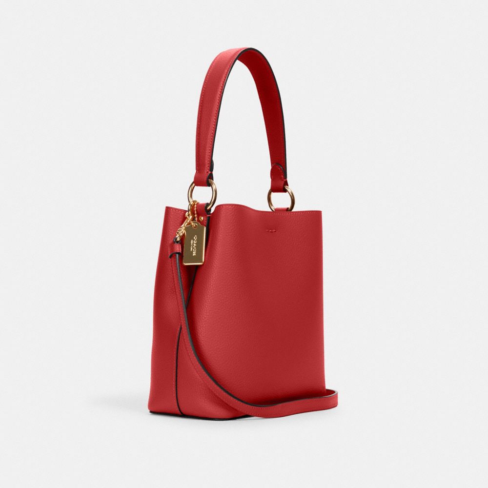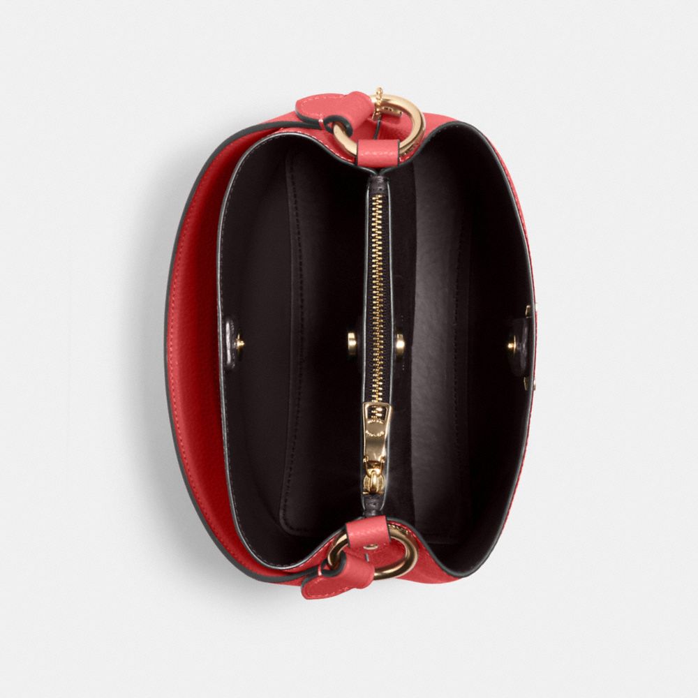Polished pebble leather| Center zip compartment| Snap closure| Handle with 6 3/4" drop| Detachable strap with 22" drop for shoulder or crossbody wear| 8 1/2" (L) x 8 1/2" (H) x 4" (W)