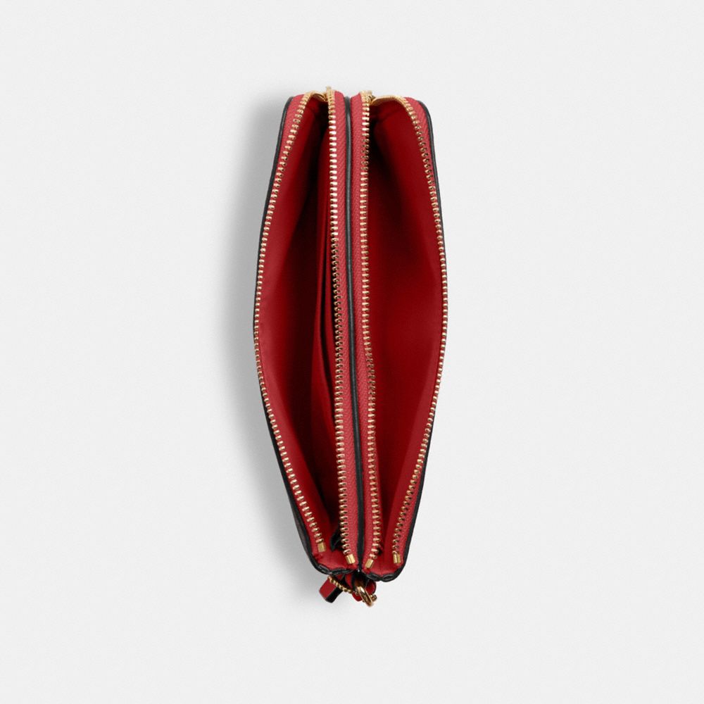 Signature coated canvas| Six credit card slots| Full-length bill compartment| Inside open pockets| Double zip closure, fabric lining| Wrist strap attached| 8 1/2" (L) x 4 1/2" (H) x 1 1/4" (W)| Fits all phone sizes up to an iPhone X and Samsung S7 Edge