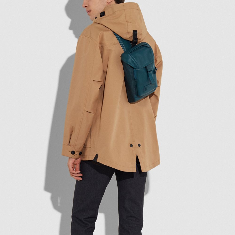 Smooth calf leather and canvas| Inside multifunction pocket| Speedclip closure, fabric lining| Outside zip pockets| Adjustable shoulder strap for crossbody wear| 6 1/2" (L) x 10 1/2" (H) x 2 1/4" (W)