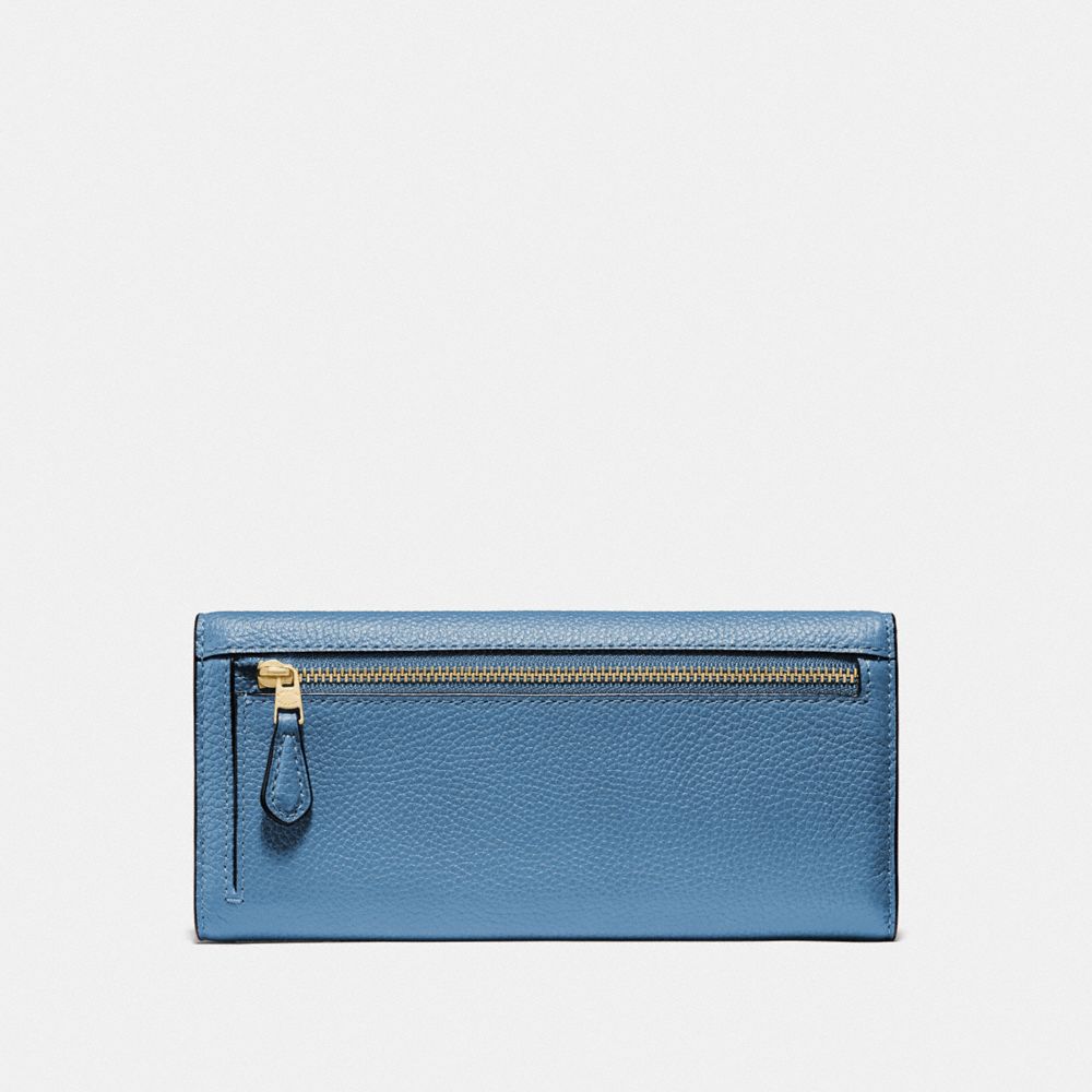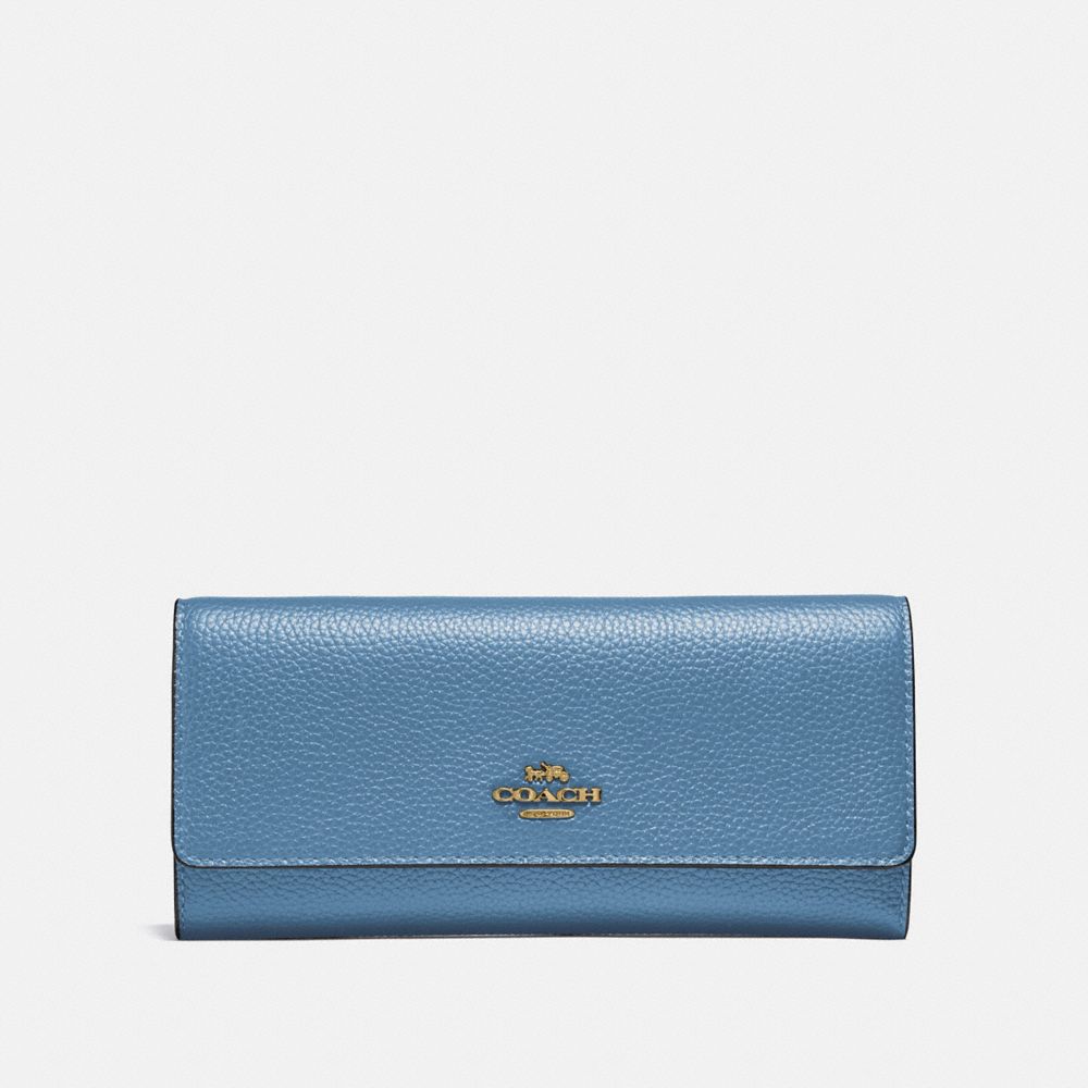 Polished pebble leather| Eight credit card slots| Full-length bill compartments| Snap closure| Outside zip coin pocket| 7 3/4" (L) x 4" (H)