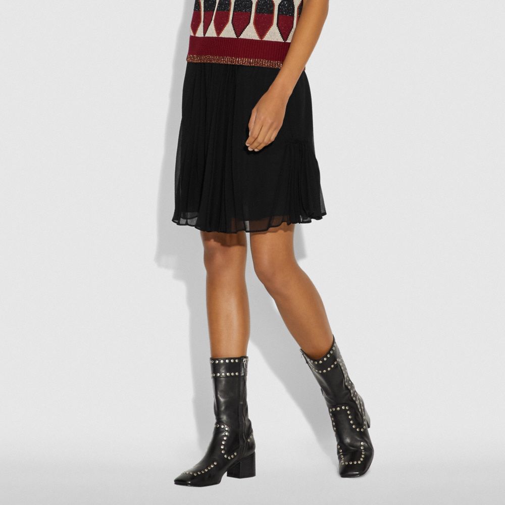 100% polyester| Lining: 100% cupro| Zip closure| Length: 17 3/4"| Model is 5'10" (178cm), chest 31" (79cm), waist 24" (61cm), hips 35" (89cm) and wears a size 2