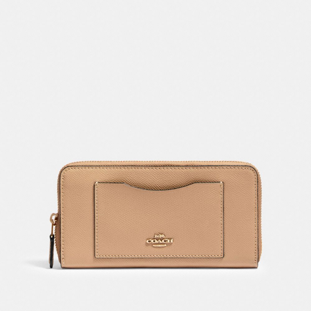 Crossgrain leather| 12 credit card slots| Full-length bill compartments| Zip coin pocket| Zip-around closure| Outside open pocket| 7 1/2" (L) x 4" (H) x 3/4" (W)| Fits all phone sizes up to an iPhone X and Samsung S7 Edge